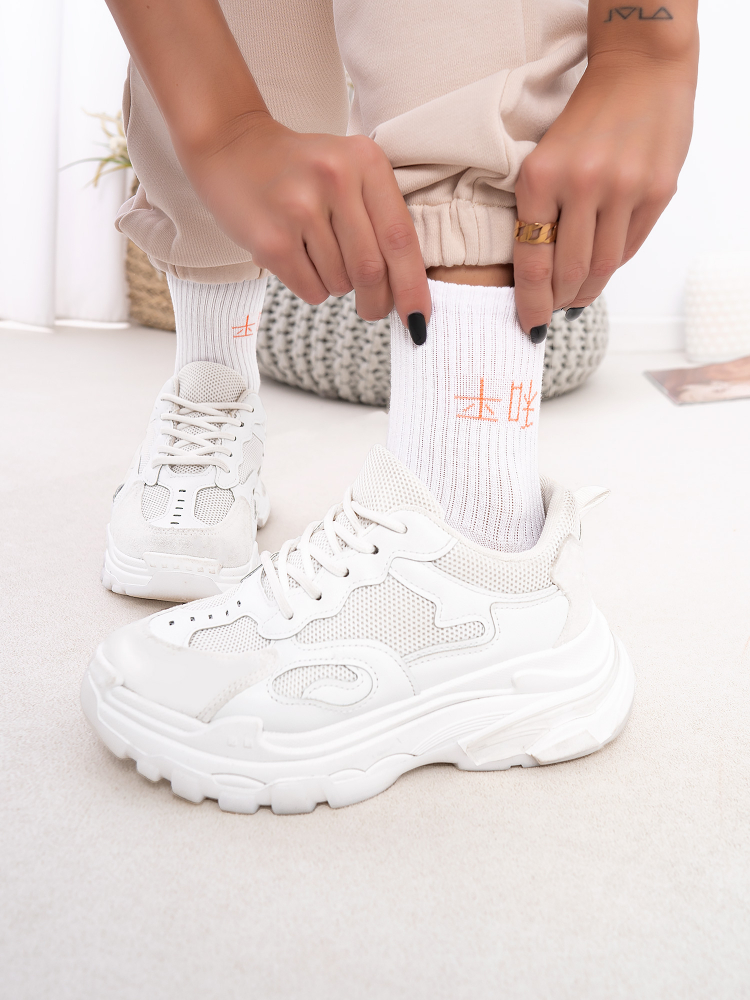 KOREAN PEACE WHITE BASKET SOCKS – fashionroom – Σε απόθεμα