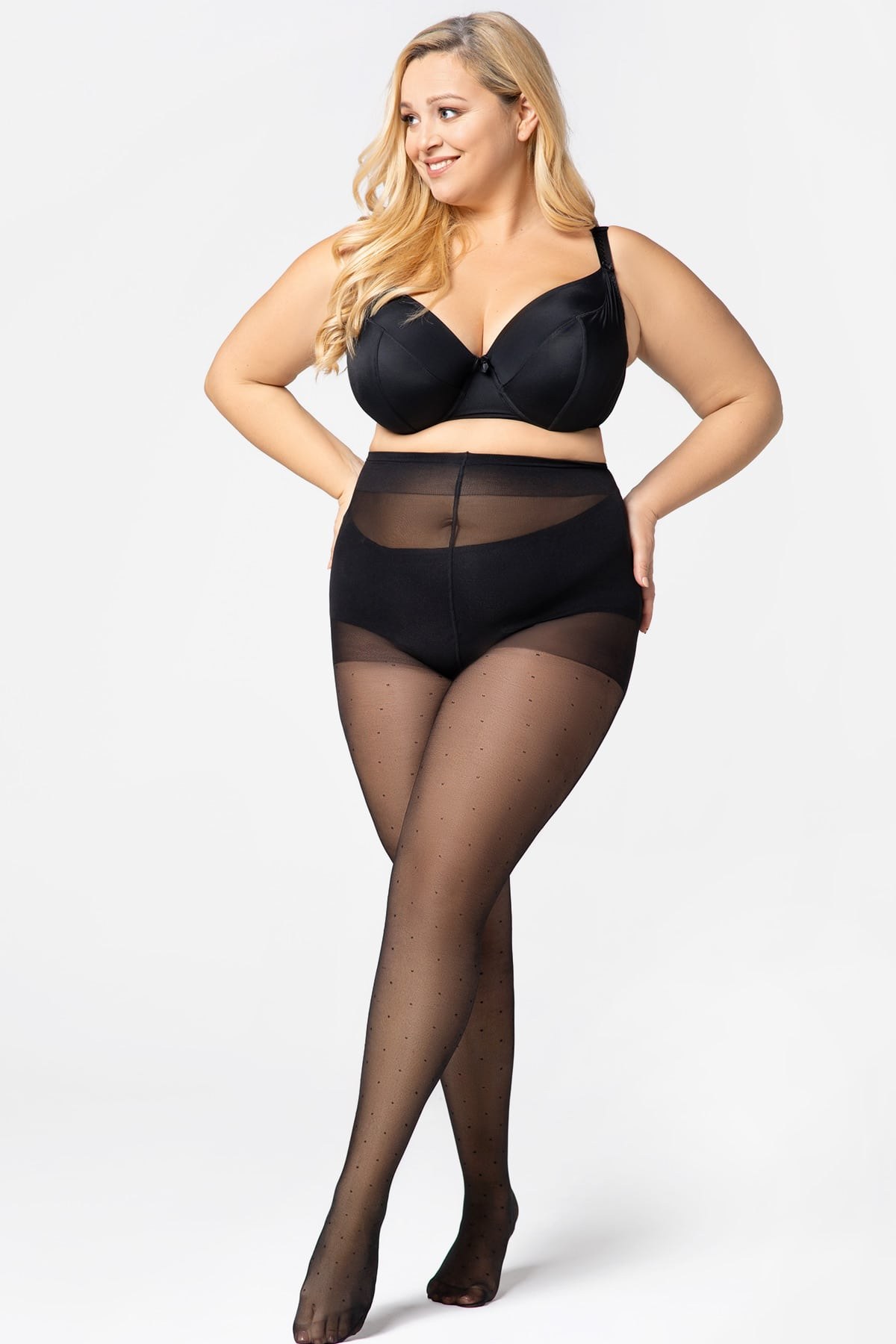 Καλσόν ημι-ματ (semi-mate) Mona Queen Size 30 Den σε σχέδιο πουά. Βαμβακερός καβάλος με ραφή που δεν διαγράφει. Ενισχυμένο αλλά διαφανές μέρος των δακτύλων. Προσφέρει άνεση στην περιοχή της κοιλιάς. Καλσόν τρισδιάστατης ύφανσης με μεγαλύτερη αντοχή κι άνεση.