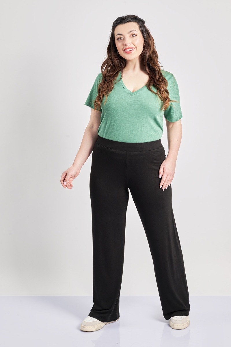 Παντελόνι μονόχρωμo από ελαστικό ύφασμα. Σε ίσια γραμμή. Λάστιχο στη μέση. Ολοκληρώστε το look με ανάλαφρα τοπ. Το μοντέλο έχει ύψος 180 εκ, στήθος 110, μέση 96, περιφέρεια 106 και φοράει το μέγεθος S