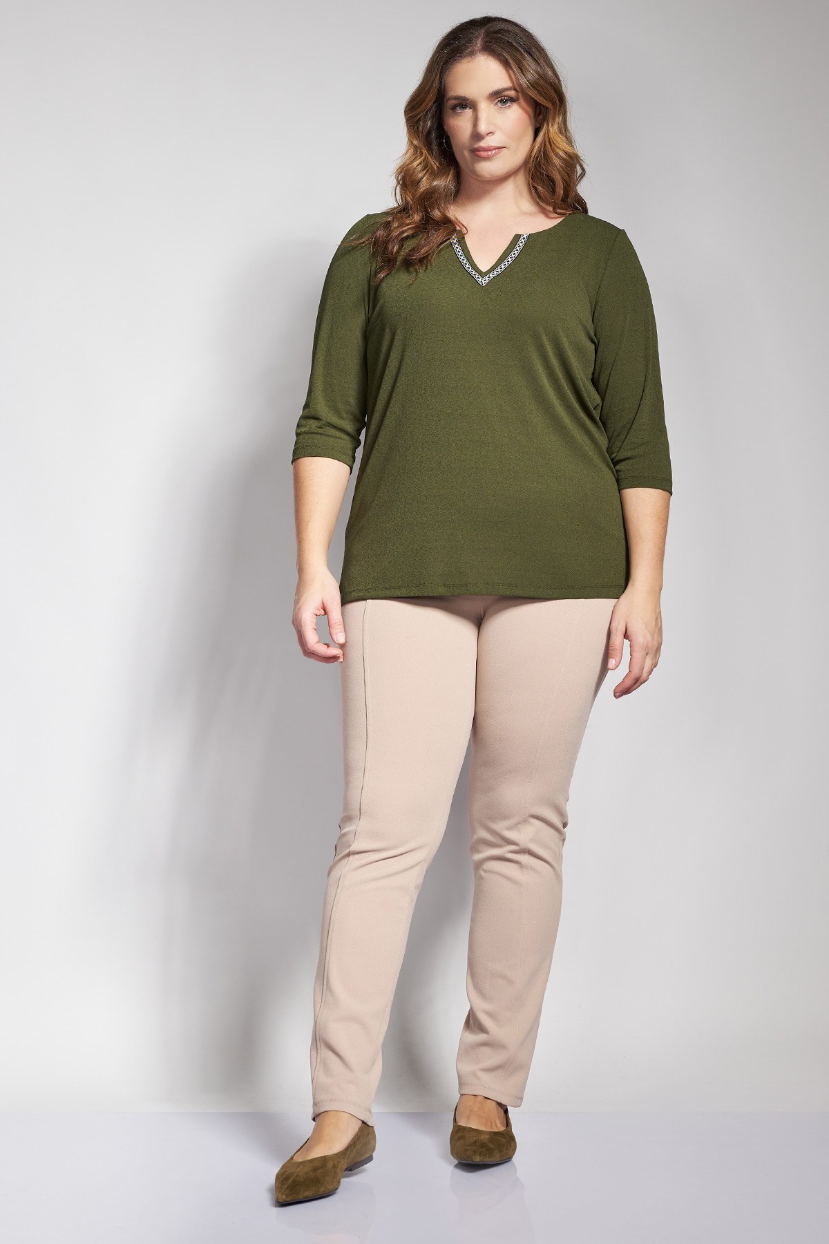 Εξασφαλίστε μια απόλυτα σύγχρονη και κολακευτική σιλουέτα με αυτό το παντελόνι που συνδυάζει την καινοτομία των υλικών με τον κλασικό σχεδιασμό. Η κατασκευή του από ύφασμα scuba προσφέρει μια λεία, ελαφρώς ελαστική υφή που αγκαλιάζει ομοιόμορφα το σώμα, διατηρώντας το σχήμα του και προσφέροντας μια αίσθηση “γλυπτικής” εφαρμογής. Η ελαστική μέση εξασφαλίζει μέγιστη άνεση και τέλεια προσαρμογή, ενώ οι ραφές στην περιφέρεια και η λεπτομέρεια με το νερβίρ στο μπροστινό μέρος δημιουργεί μια κάθετη γραμμή που επιμηκύνει οπτικά τα πόδια. Η slim γραμμή του το καθιστά ένα πολυμορφικό κομμάτι, ιδανικό για εσάς που αναζητάτε την τέλεια ισορροπία ανάμεσα στη sport-chic άνεση και την προσεγμένη εμφάνιση. Casual look: Συνδυάστε το με ένα oversized φούτερ ή μια μακριά πλεκτή ζακέτα και chunky sneakers για ένα άνετο και μοντέρνο look πόλης. Office look: Ταίριαξέ το με ένα μακρύ πουκάμισο και ένα tailored γιλέκο, ολοκληρώνοντας το σύνολο με flat μποτάκια ή loafers για μια κομψή επαγγελματική εμφάνιση. Evening look: Αναδείξτε τη λεία υφή του scuba συνδυάζοντάς το με ένα εντυπωσιακό τοπ με παγιέτες ή ένα σακάκι με έντονους ώμους και ψηλοτάκουνες γόβες. Το μοντέλο έχει ύψος 180 εκ στήθος 107 μέση 95 περιφέρεια 122 και φοράει το μέγεθος M