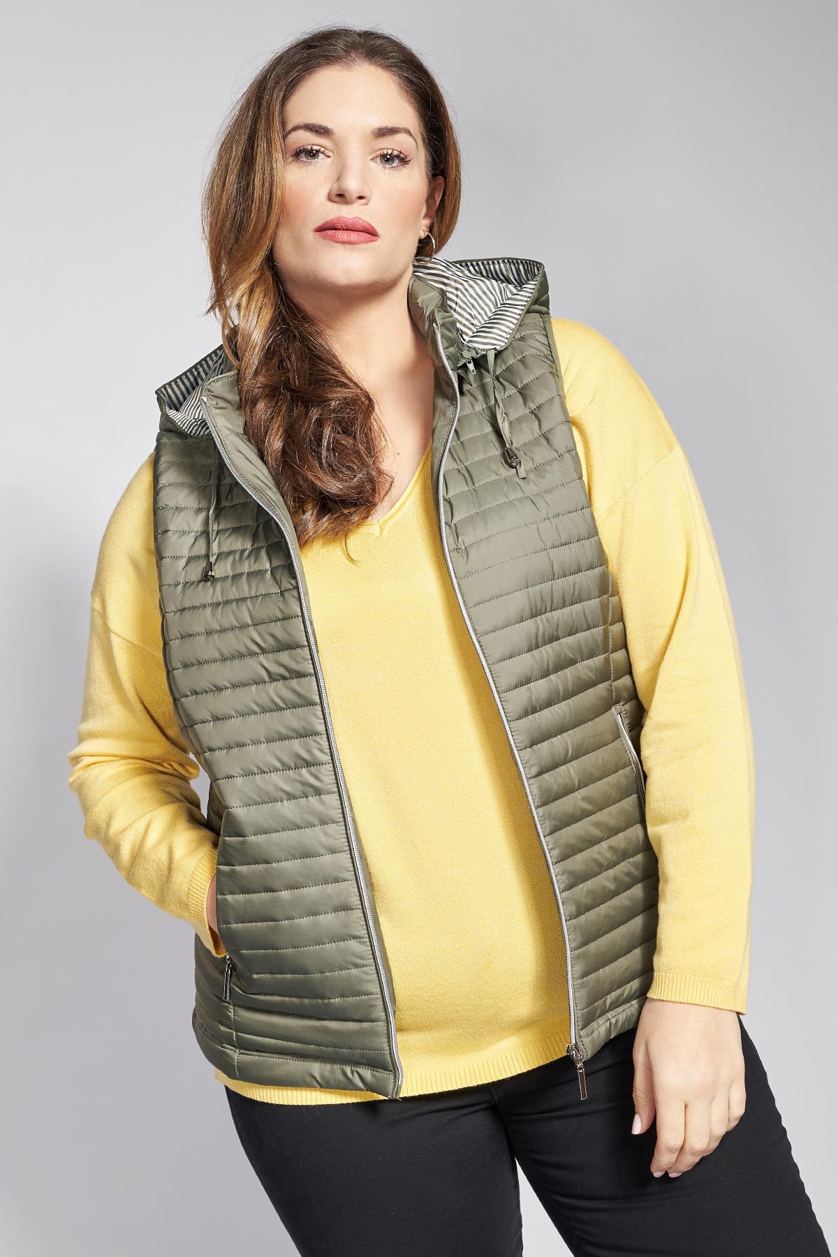 Αμάνικο μπουφάν καπιτονέ με ριγέ κουκούλα
