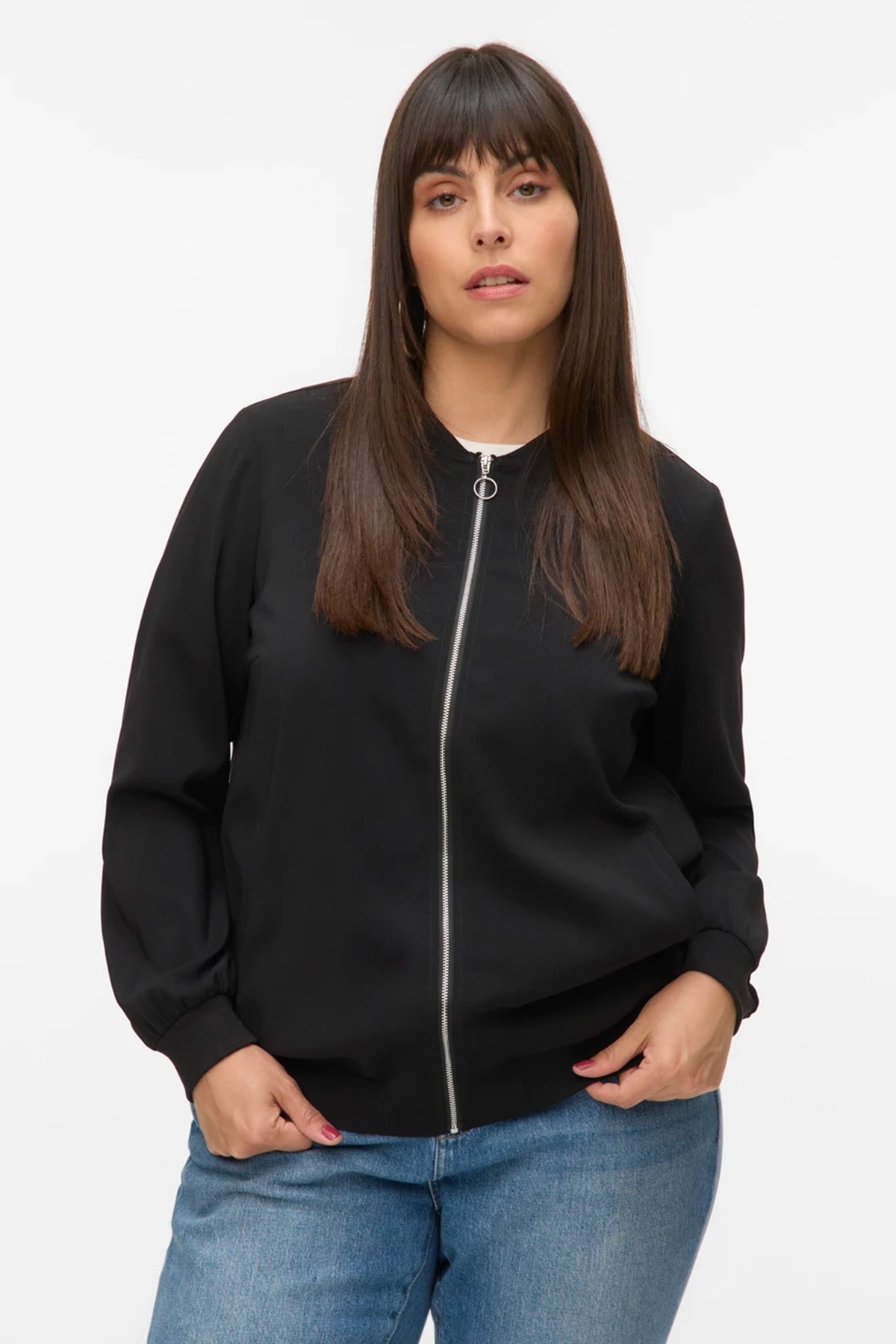 Μονόχρωμο μπουφάν ελαφρύ. Μακριά μανίκια με ελαστική μανσέτα. Κλείσιμο με φερμουάρ. Το κύριο υλικό σε αυτό το προϊόν περιέχει τουλάχιστον 50% ανακυκλωμένο πολυεστέρα. Ο ανακυκλωμένος πολυεστέρας εξοικονομεί φυσικούς πόρους και μειώνει την ποσότητα των αποβλήτων. Το μοντέλο έχει ύψος 180 εκ, στήθος 107, μέση 95, περιφέρεια 122 και φοράει το μέγεθος S