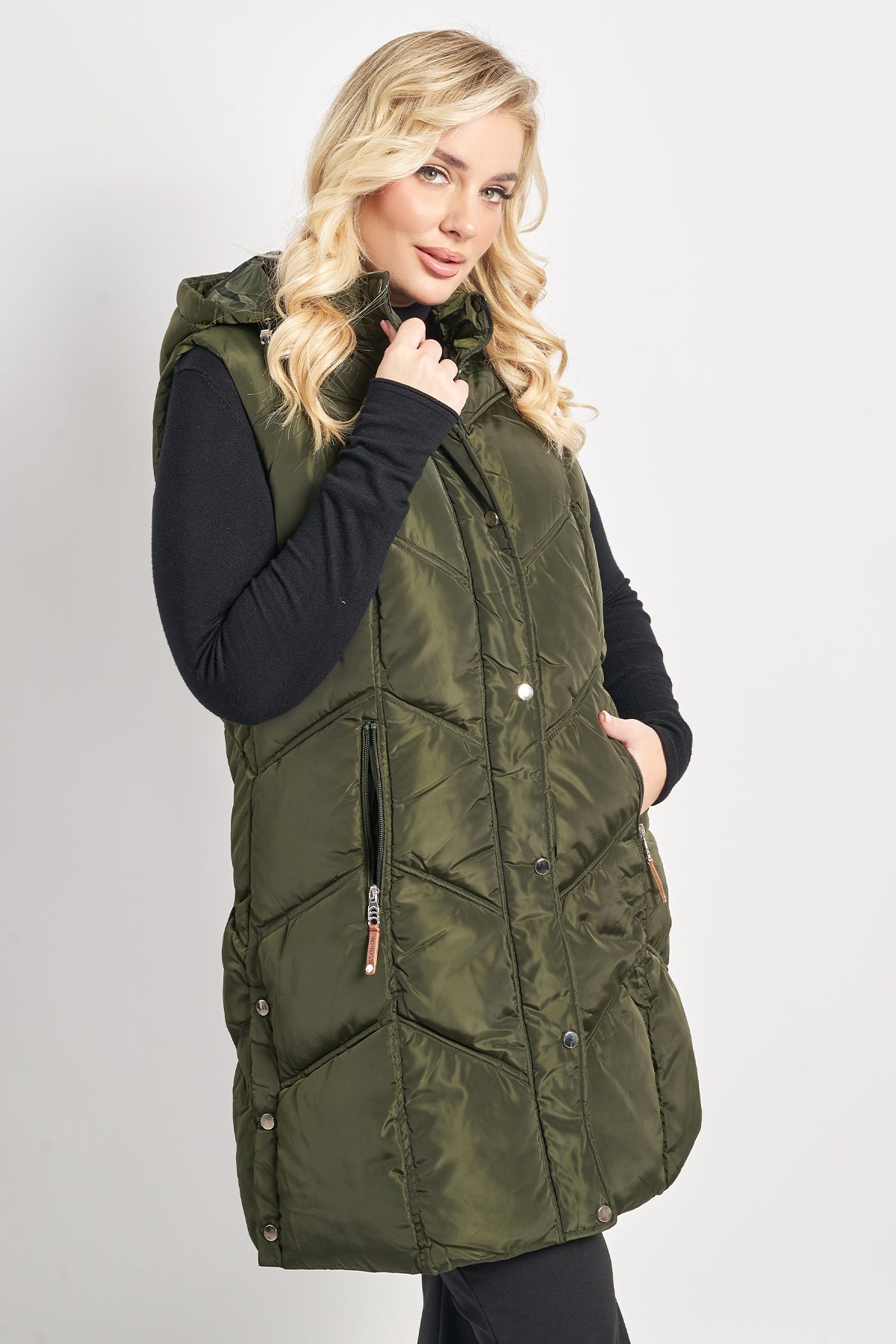 Αυτό το μακρύ μπουφάν είναι το ιδανικό αμάνικο πανωφόρι για μεταβατικές περιόδους και layering, προσφέροντας ζεστασιά και στυλ. Ημιαδιάβροχο, σας καλύπτει και σε μέρες με ελαφριά βροχούλα. Διαθέτει καπιτονέ ραφές σε μοντέρνο σχέδιο, κούμπωμα με φερμουάρ και σούστες και μποστινές τσέπες που κλέινουν με sporty φερμουάρ. Χάρη στην αποσπώμενη κουκούλα, μπορεί να φορεθεί τοσο σε athleisure όσο και σε πιο casual chic σύνολα. Φοδραρισμένο. Συνδυάστε το με ένα μονόχρωμο ζιβάγκο ή λεπτό πλεκτό και δερμάτινο κολάν ή παντελόνι για ένα μοντέρνο street style. Ολοκληρώστε το look με αρβυλάκια ή μακριές μπότες και μία μεγάλη τσάντα ώμου. Το μοντέλο έχει ύψος 176 εκ στήθος 99 μέση 85 περιφέρεια 114 και φοράει το μέγεθος 44