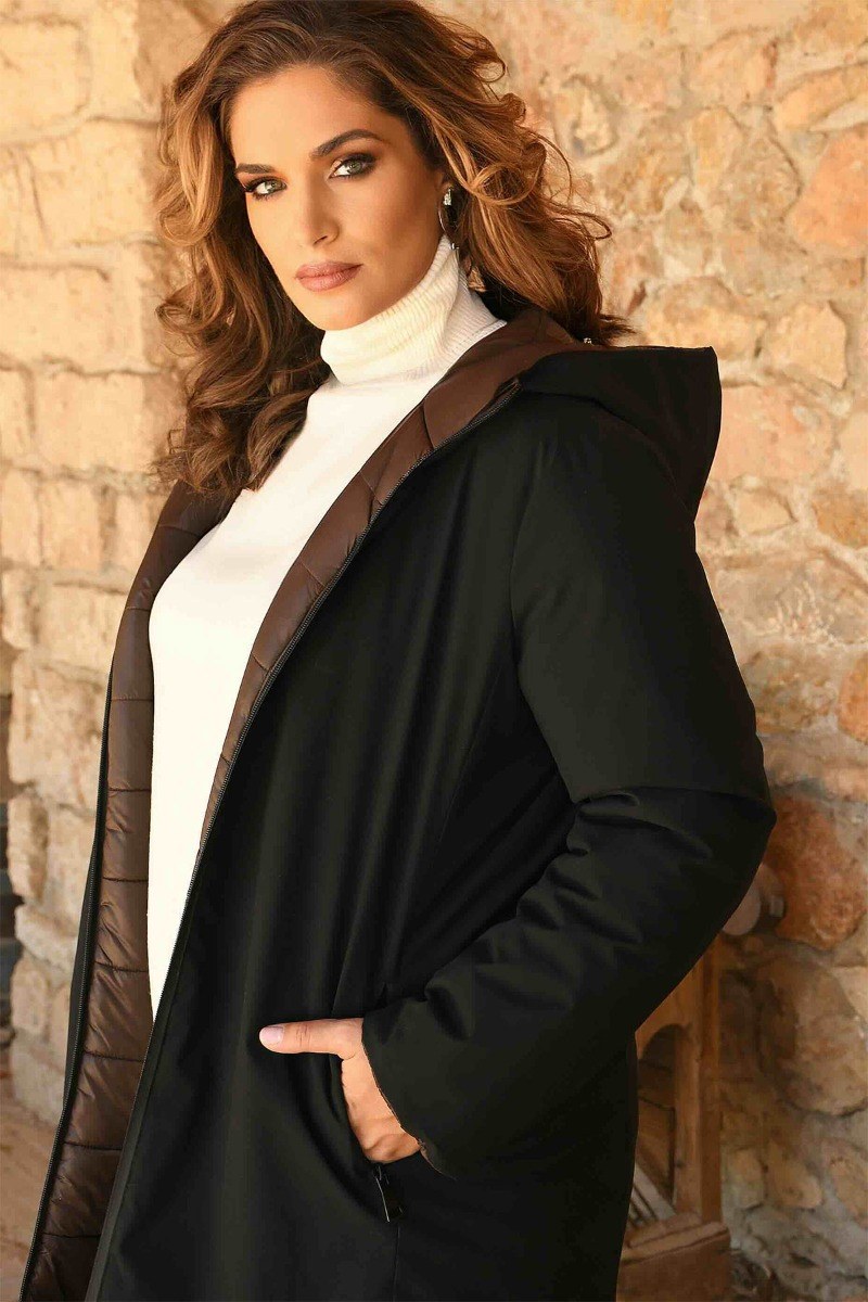 Επενδύστε σε πρακτικότητα με μπουφάν διπλής όψης. Η μία όψη είναι καπιτονέ και η άλλη λεία για δύο διαφορετικά looks. Διαθέτει φερμουάρ μπροστά και πλαϊνές τσέπες και προσφέρει ζεστασιά με ελαφριά αίσθηση. Φορέστε το με πλεκτό και μαύρο Wide Leg ή straight trousers για το γραφείο και ολοκληρώστε με μπότες για smart casual βόλτες. Το μοντέλο έχει ύψος 180 εκ, στήθος 107, μέση 95, περιφέρεια 122 και φοράει το μέγεθος S.