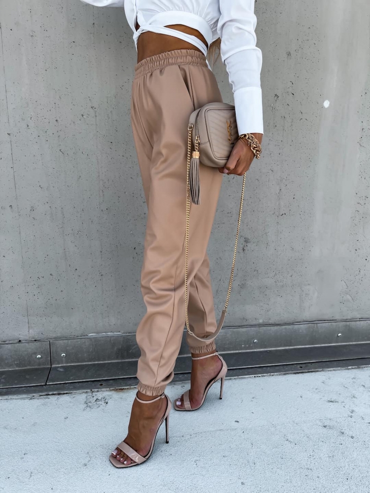 Παντελόνι από οικολογικό δέρμα με λάστιχο κανονική γραμμή