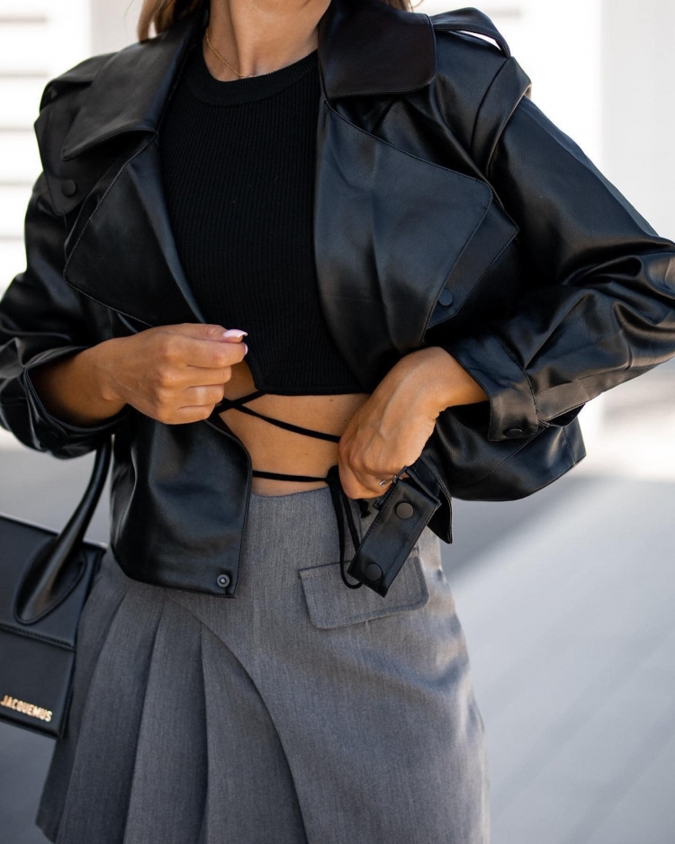 Δερματίνη  κοντό τζάκετ  κανονική γραμμή