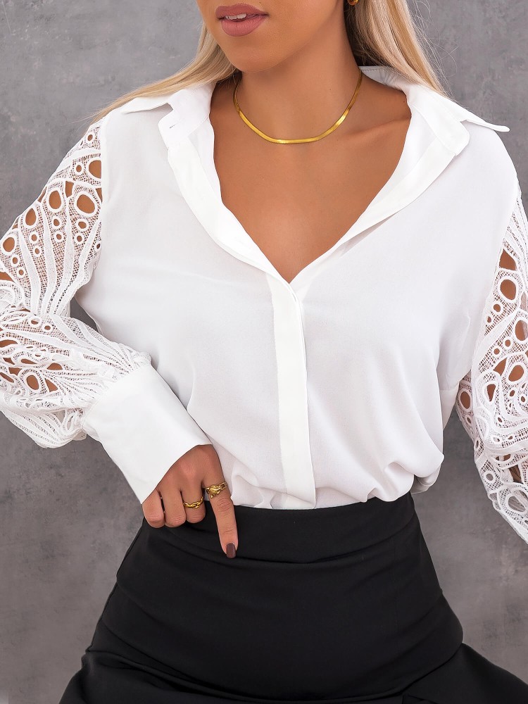 πουκάμισο λευκό με κιπούρ μανίκια κανονική γραμμή one size