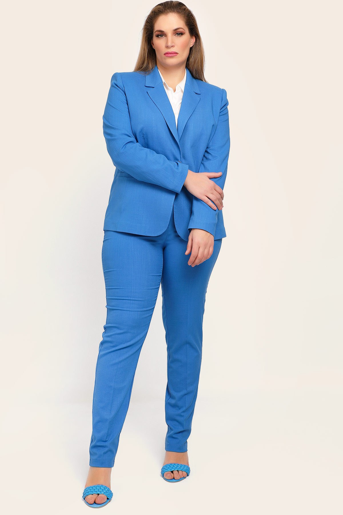 Παντελόνι κοστουμιού από ρεγιόν. Ίσια ελαστική γραμμή. Διακοσμητικές τσέπες στο πλάι. Σε όψη λινού. Συνδυάστε το με το σακάκι 240910760. Το μοντέλο έχει ύψος 179 εκ, στήθος 109, μέση 89, περιφέρεια 119 και φοράει το μέγεθος M