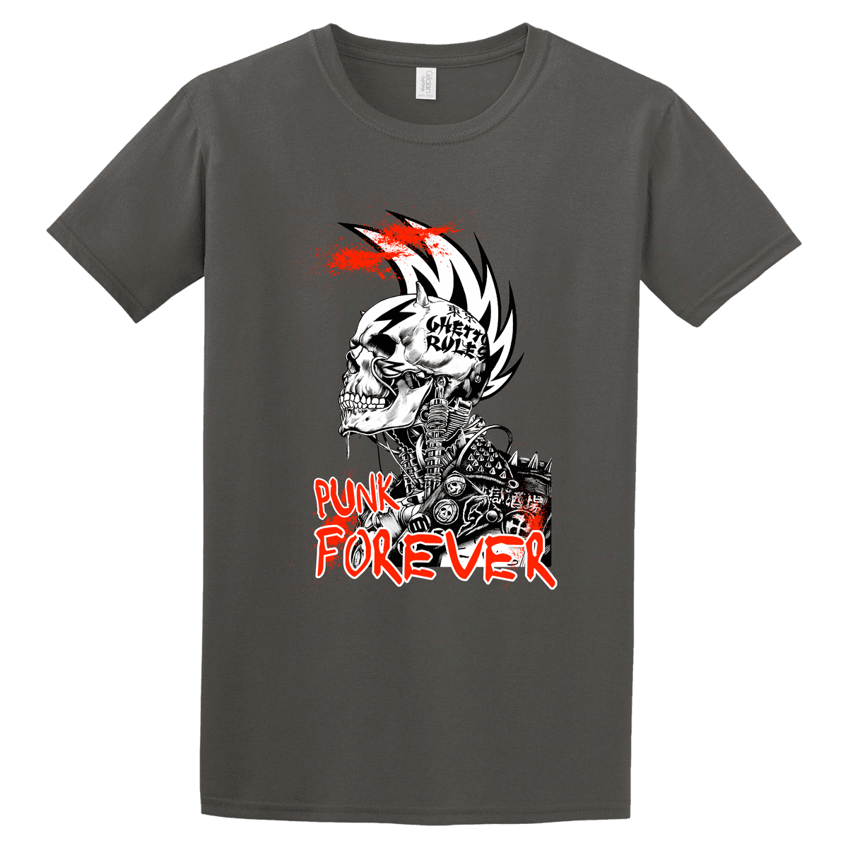 Κοντομάνικη μπλούζα Punk For Ever σε 6 διαφορετικές αποχρώσεις απο 100% οργανικό Premium βαμβάκι τύπου Combed RingSpun σεμι-πενιέ 155 γραμμαρίων. Εφαρμοστή γραμμή, στρογγυλή λαιμόκοψη, χωρίς πλαϊνές ραφές. Προϊόν ψηφιακής ανεξίτηλης εκτύπωσης απευθείας πάνω στο ύφασμα με αδιάβροχα, ασφαλή και  πιστοποιημένα μελάνια OEKO-TEX 100 που προσφέρουν ζωντανά χρώματα, ασφάλεια και μεγάλη αντοχή στο πλύσιμο και στο χρόνο. Το σώμα σας αναπνέει κανονικά σε αντίθεση με τις στάμπες και υλικά Plastisol και το τύπωμα δεν το νοιώθεται καθόλου στο σώμα σας και δεν βαραίνει την μπλούζα. Συμβουλευτείτε το μεγεθολόγιο στο κάτω μέρος της σελίδας μας ή στις φωτογραφίες του προϊόντος. Εξαιρετική ποιότητα κατασκευής.