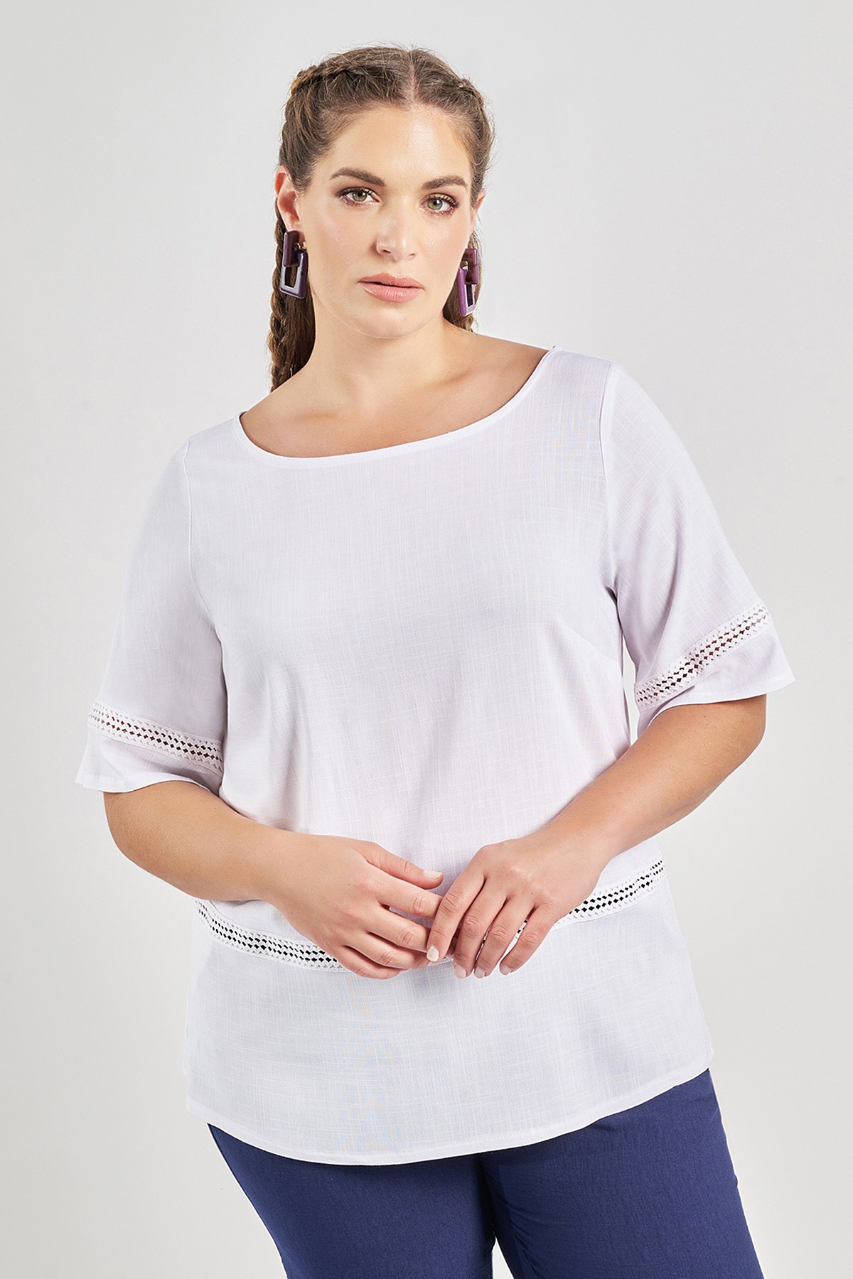 Μπλούζα κοντομάνικη με διάτρητη λεπτομέρεια
