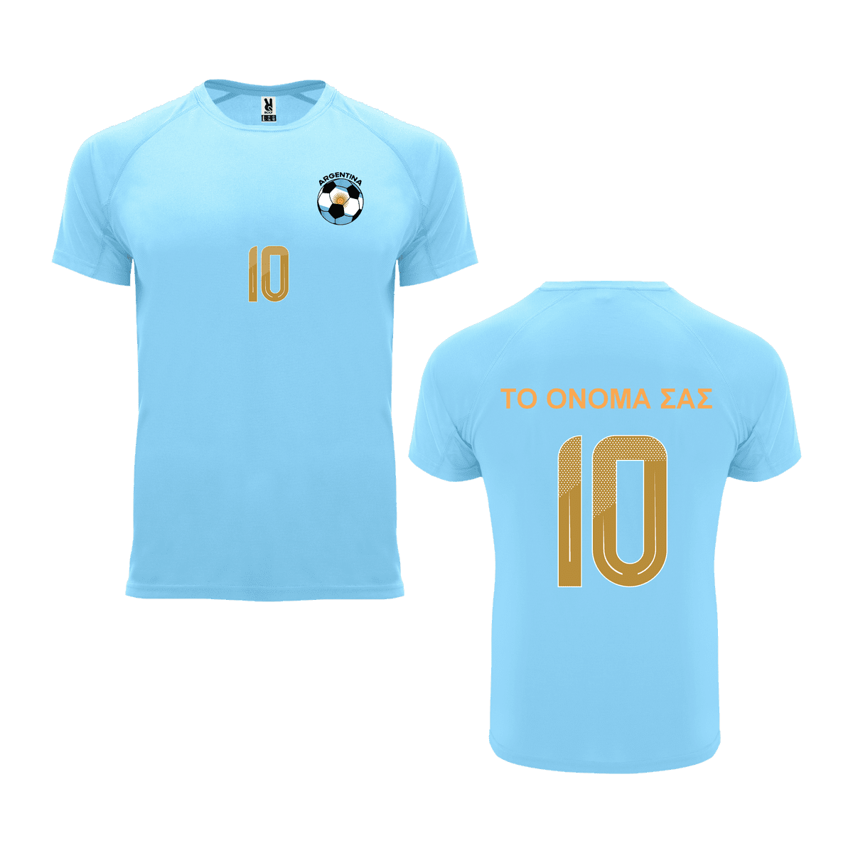 Μπλούζα ποδοσφαίρου Argentina σε γαλάζιο χρώμα (sky blue) για ηλικίες από 4 έως και 16 ετών από 100% πικέ πολυεστέρα 135g/m². Συμβουλευτείτε το μεγεθολόγιο στην γκαλερί φωτογραφιών του προϊόντος. Κοντά μανίκια, πλαϊνές ραφές, μανικοκόλληση, στρογγυλή λαιμόκοψη και γρήγορο στέγνωμα. Αναπνέον ύφασμα, τεχνικό μπλουζάκι, εξαιρετική ποιότητα κατασκευής.