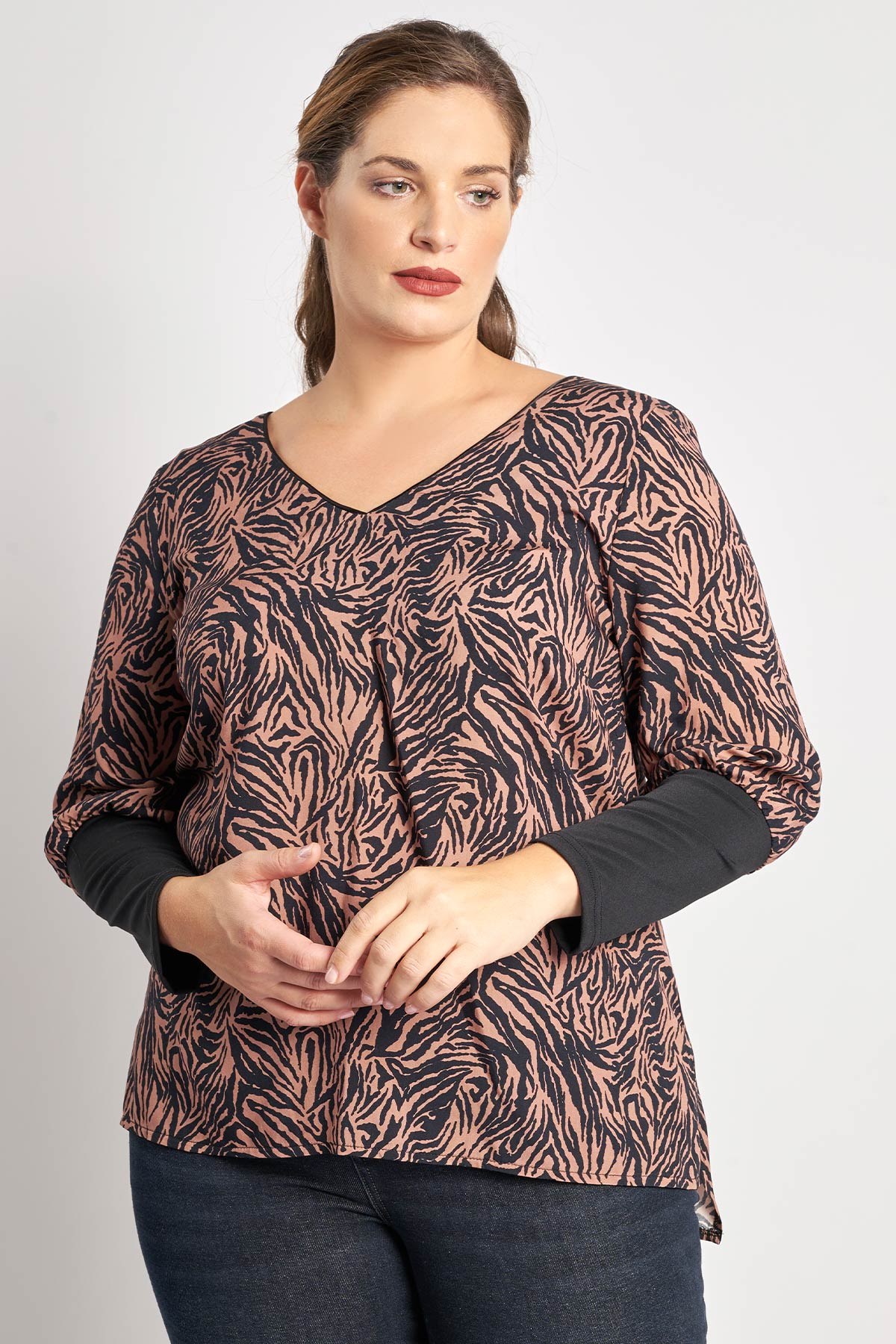 Μπλούζα animal print με μονόχρωμη μανσέτα