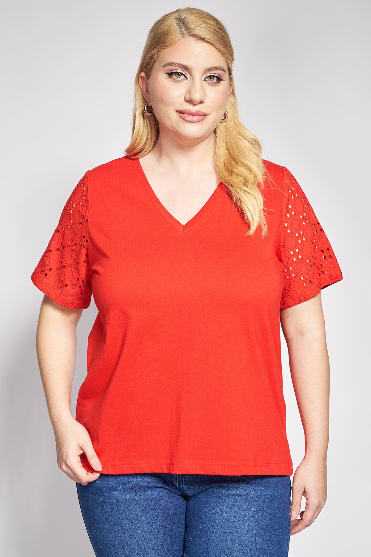 Αυτή η βαμβακερή μπλούζα αποτελεί μια ιδανική επιλογή για εμφανίσεις που συνδυάζουν την άνεση με τις θηλυκές λεπτομέρειες. Από απαλό βαμβακερό ύφασμα, προσφέρει ανάλαφρη αίσθηση καθ’ όλη τη διάρκεια της ημέρας.Με κοντά μανίκια από broderie anglaise, που προσθέτουν μια ρομαντική και κομψή νότα στο κατά τα άλλα minimal σχέδιο. Η εφαρμογή της είναι άνετη και κλασική, εξασφαλίζοντας ελευθερία κινήσεων. Casual Chic: Συνδυάστε τη με το αγαπημένο σας τζιν παντελόνι και sneakers για μια προσεγμένη καθημερινή εμφάνιση στο γραφείο ή τη βόλτα. Elegant Office: Για ένα πιο επαγγελματικό look, ταιριάξτε τη με μια υφασμάτινη παντελόνα σε ουδέτερους τόνους και κομψές γόβες. Το μοντέλο έχει ύψος 177εκ στήθος 110 μέση 85 περιφέρεια 115 και φοράει μέγεθος S