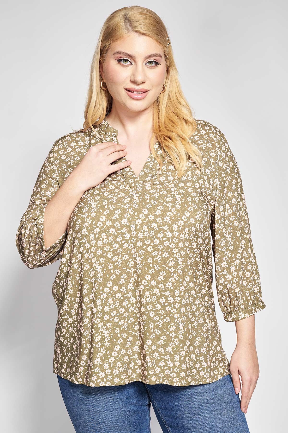 Μπλούζα βισκόζη εμπριμέ φλοράλ με V
