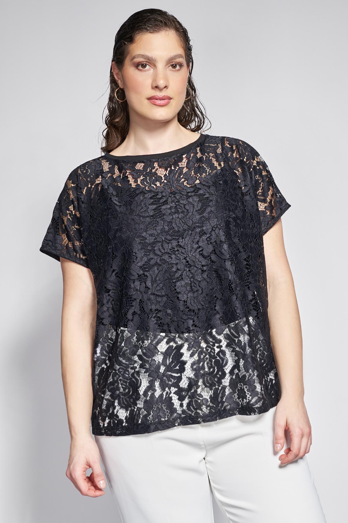 Μπλούζα με δαντέλα σε άνετη γραμμή