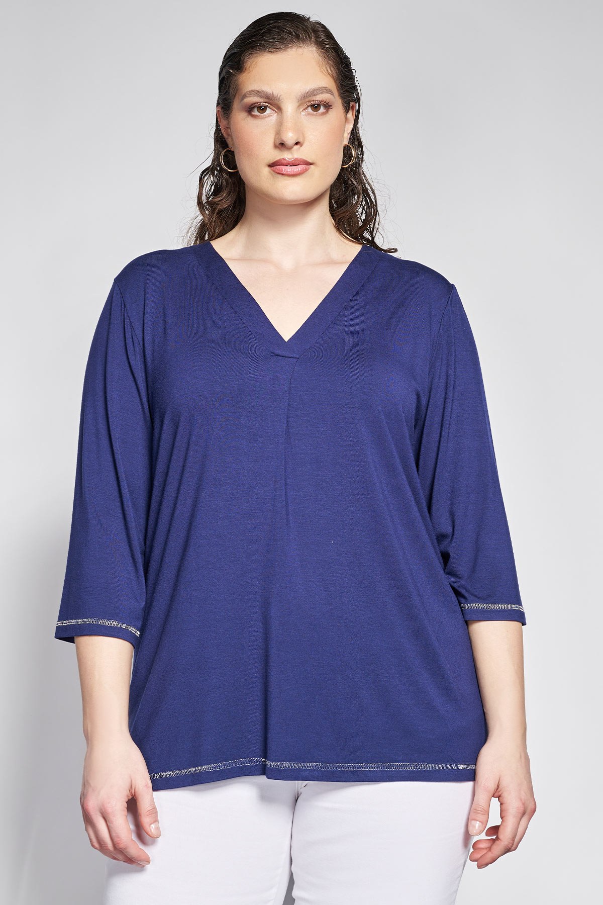 Μπλούζα με λαιμόκοψη V και ασημί lurex τελειώματα