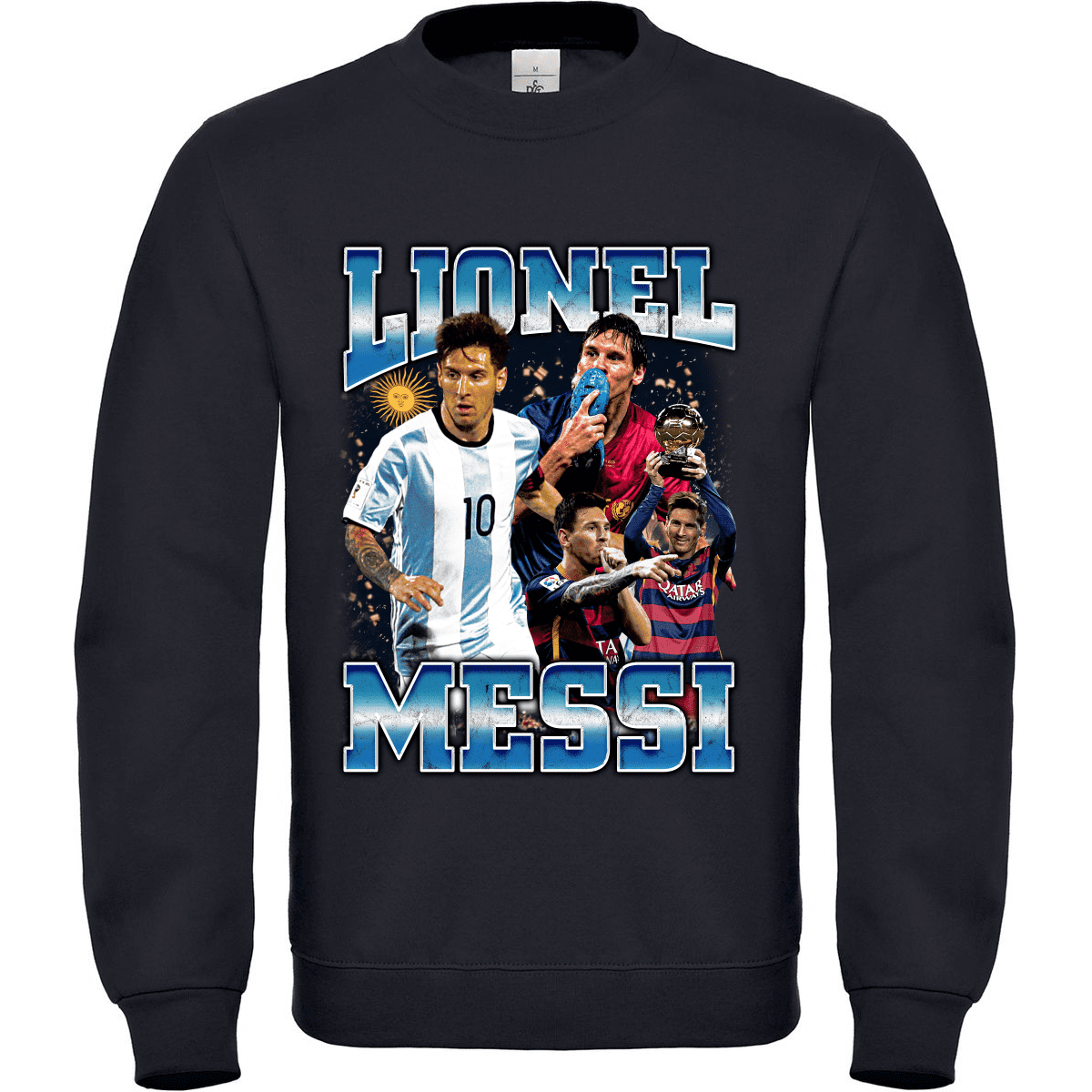 Παιδικό φούτερ Lionel Messi σε 6 διαφορετικές αποχρώσεις με σύνθεση 50% βαμβάκι – 50% πολυεστέρα 270gsm, ενιαία μανίκια, στενό λαιμό με λύκρα, διπλές ραφές, χωρίς πλαϊνές ραφές. Συμβουλευτείτε το μεγεθολόγιο από τις εικόνες του προϊόντος ή από το κάτω μέρος της σελίδας μας στην ενότητα ” βρείτε το μέγεθος σας “. Το YXS αντιστοιχεί σε ηλικίες 3-4, το YS σε ηλικίες 5-6, το YM σε ηλικίες 7-8, το YL σε ηλικίες 9-11 και το YXL σε ηλικίες 12-14. Εξαιρετική ποιότητα κατασκευής.