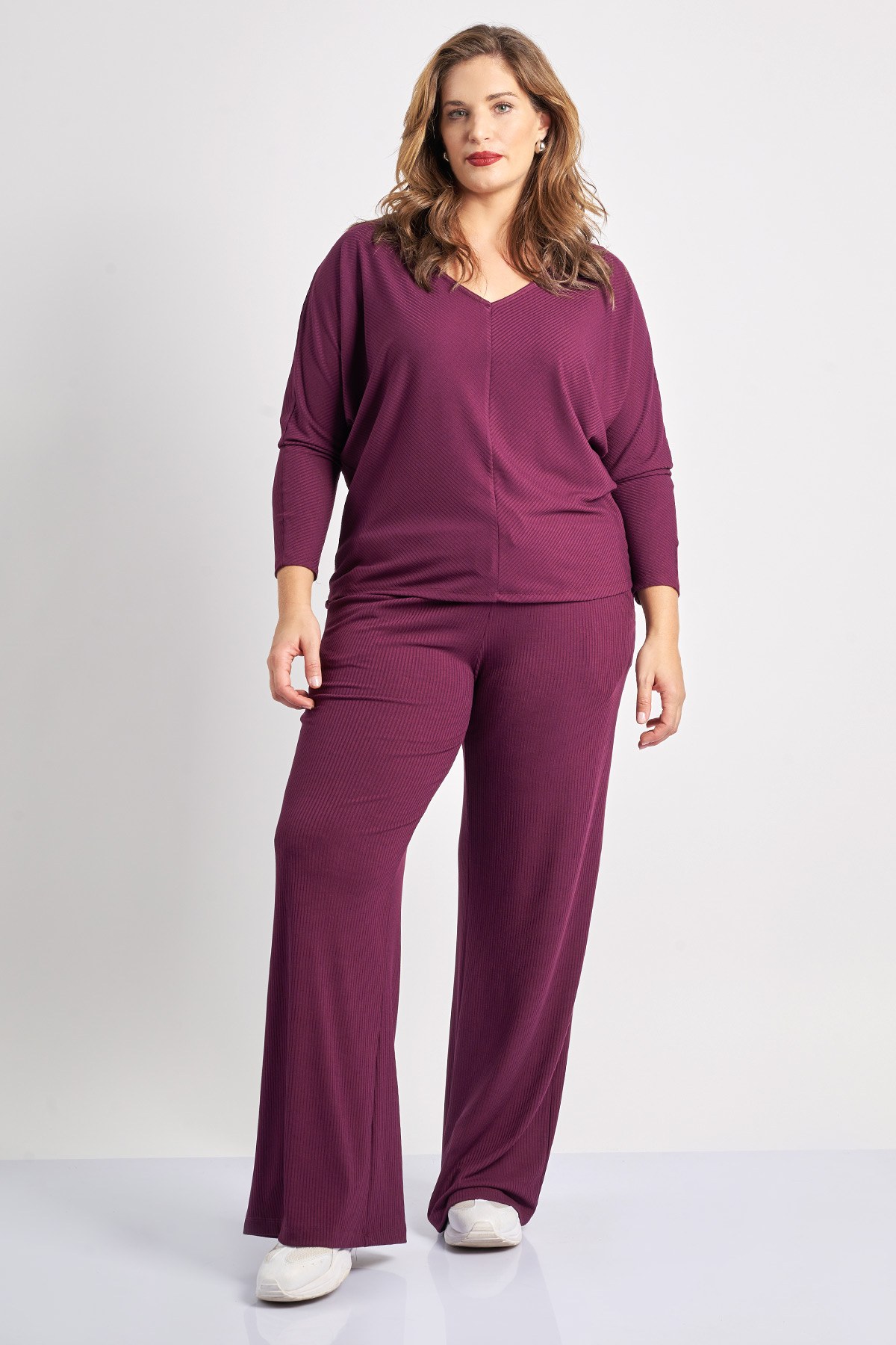 Μακριά παντελόνα σε ριπ ύφανση από σύμμεικτο ρεγιόν. Λάστιχο στη μέση άνεση και δέσιμο με κορδόνι. Ολοκληρώστε το σετ με την μπλούζα 012520196964. Το μοντέλο έχει ύψος 180 εκ, στήθος 107, μέση 95, περιφέρεια 122 και φοράει το μέγεθος S