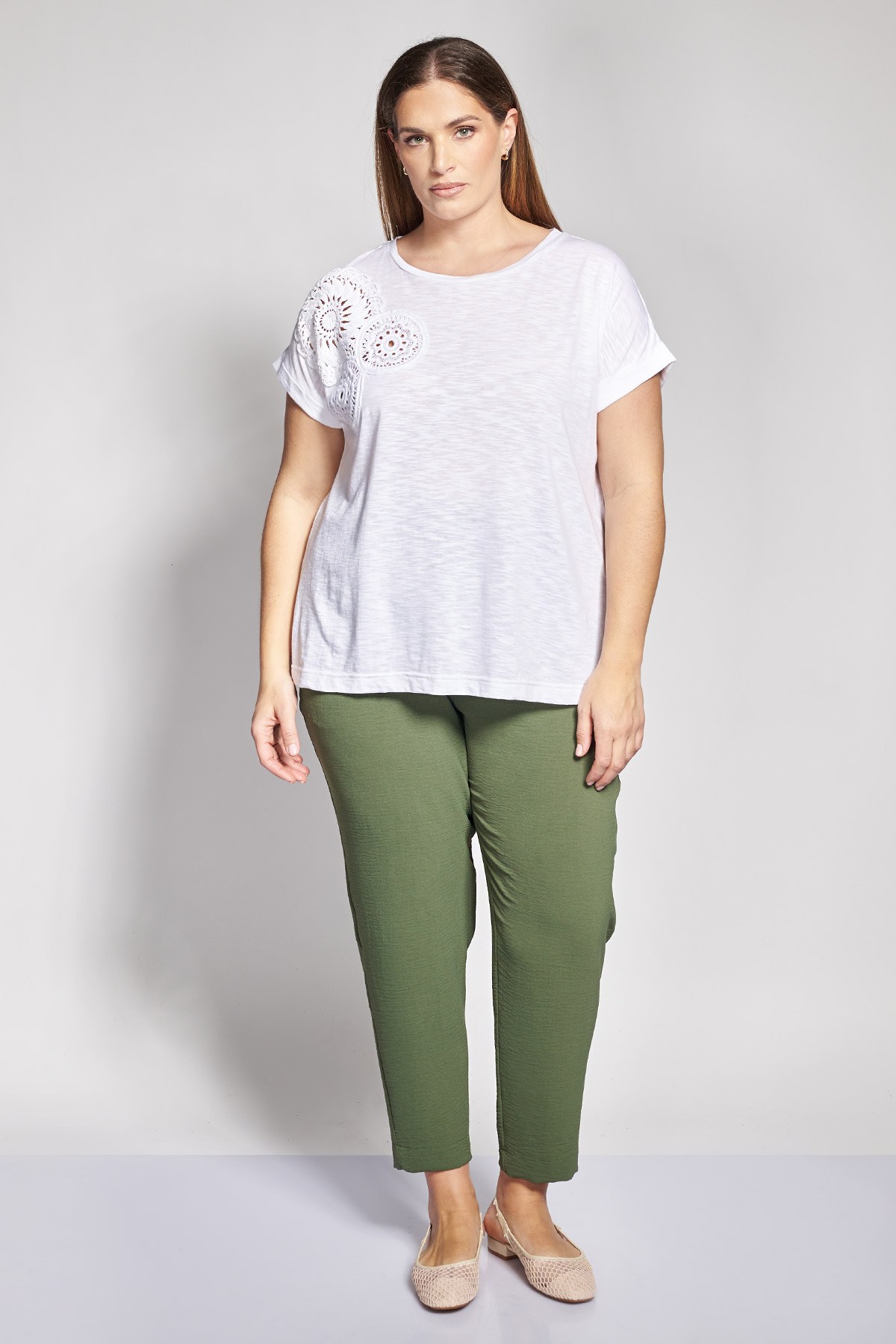 Αποκτήστε το παντελόνι που συνδυάζει την απόλυτη άνεση με τον σύγχρονο σχεδιασμό για τις καθημερινές σας εμφανίσεις. Η ύφανσή του διακρίνεται για την ιδιαίτερη washed ανάγλυφη όψη του, είναι μονόχρωμο και ακολουθεί tapered γραμμή που στενεύει ελαφρώς στο κάτω μέρος. Διαθέτει ελαστική μέση για σταθερή εφαρμογή, πλαϊνές λειτουργικές τσέπες, κομψό ρεβέρ στο τελείωμα και μήκος που αναδεικνύει τον αστράγαλο. Για ένα χαλαρό look, συνδυάστε το με το αντίστοιχο top και αθλητικά υποδήματα για ένα ολοκληρωμένο minimal σύνολο. Για τις καθημερινές σας δραστηριότητες, ταιριάξτε το με ένα απλό t-shirt και μια oversized ζακέτα. Σε μια casual chic περίσταση, αναβαθμίστε το με ένα ζευγάρι slingback γόβες και μια εντυπωσιακή δερμάτινη ζώνη. Το μοντέλο έχει ύψος 180 εκ στήθος 107 μέση 95 περιφέρεια 122 και φοράει το μέγεθος S