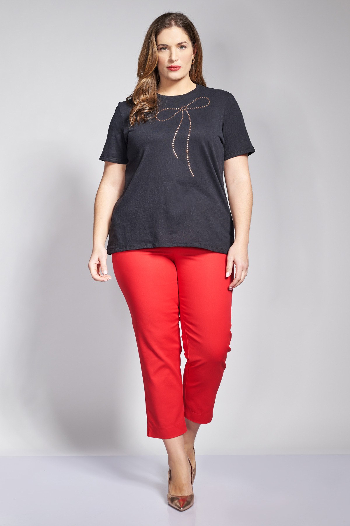 Αναβαθμίστε την γκαρνταρόμπα σας με αυτό το chino παντελόνι, ειδικά σχεδιασμένο με ανορθωτική τεχνολογία που αναδεικνύει και σμιλεύει τη σιλουέτα. Κλείνει με κουμπί και κόπιτσα για καλύτερη στήριξη. Διαθέτει ψηλόμεση γραμμή που προσφέρει εξαιρετικό έλεγχο στην περιοχή της κοιλιάς και σταθερή εφαρμογή, εξασφαλίζοντας άνεση καθ’ όλη τη διάρκεια της ημέρας. Η ίσια, στενή γραμμή του και το κομψό μήκος που φτάνει έως τον αστράγαλο το καθιστούν ένα διαχρονικό κομμάτι, ιδανικό για να φορεθεί από το πρωί στο γραφείο με πουκάμισο, έως το βράδυ με ένα εντυπωσιακό τοπ και γόβες. Το μοντέλο έχει ύψος 180 εκ στήθος 107 μέση 95 περιφέρεια 122 και φοράει το μέγεθος S