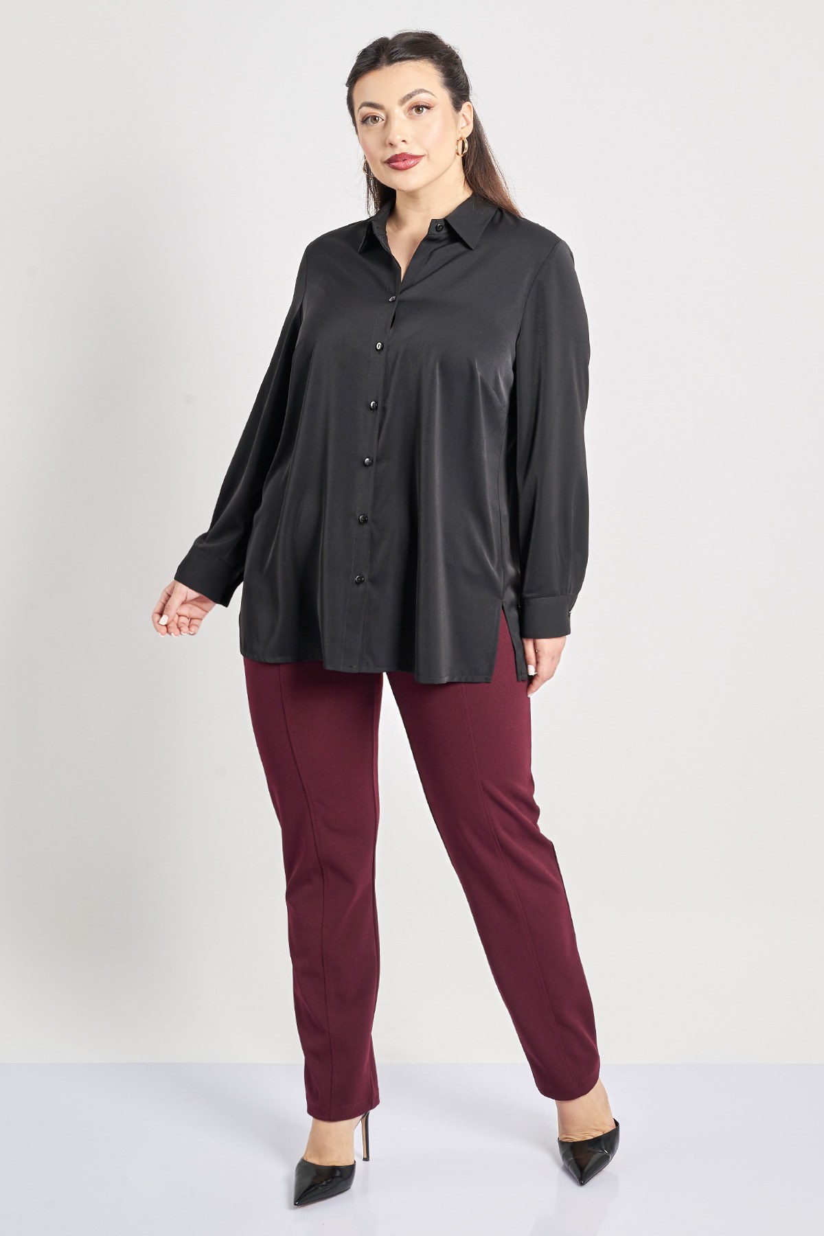Βάλτε τη βάση στις καθημερινές εμφανίσεις σας με παντελόνι-κολάν που σμιλεύει τη σιλουέτα. Punto ελαστικό ύφασμα με σταθερό κράτημα για καθαρή σιλουέτα. Μεσοκάβαλο, ελαστική μέση πίσω, διακοσμητικές κάθετες ραφές μπροστά, στενό τελείωμα στον αστράγαλο και κανονική εφαρμογή. Φορέστε το με πουκάμισο και loafers στο γραφείο ή με ζιβάγκο και ankle boots για after-work. Το μοντέλο έχει ύψος 172 εκ, στήθος 108, μέση 94, περιφέρεια 111 και φοράει το μέγεθος S