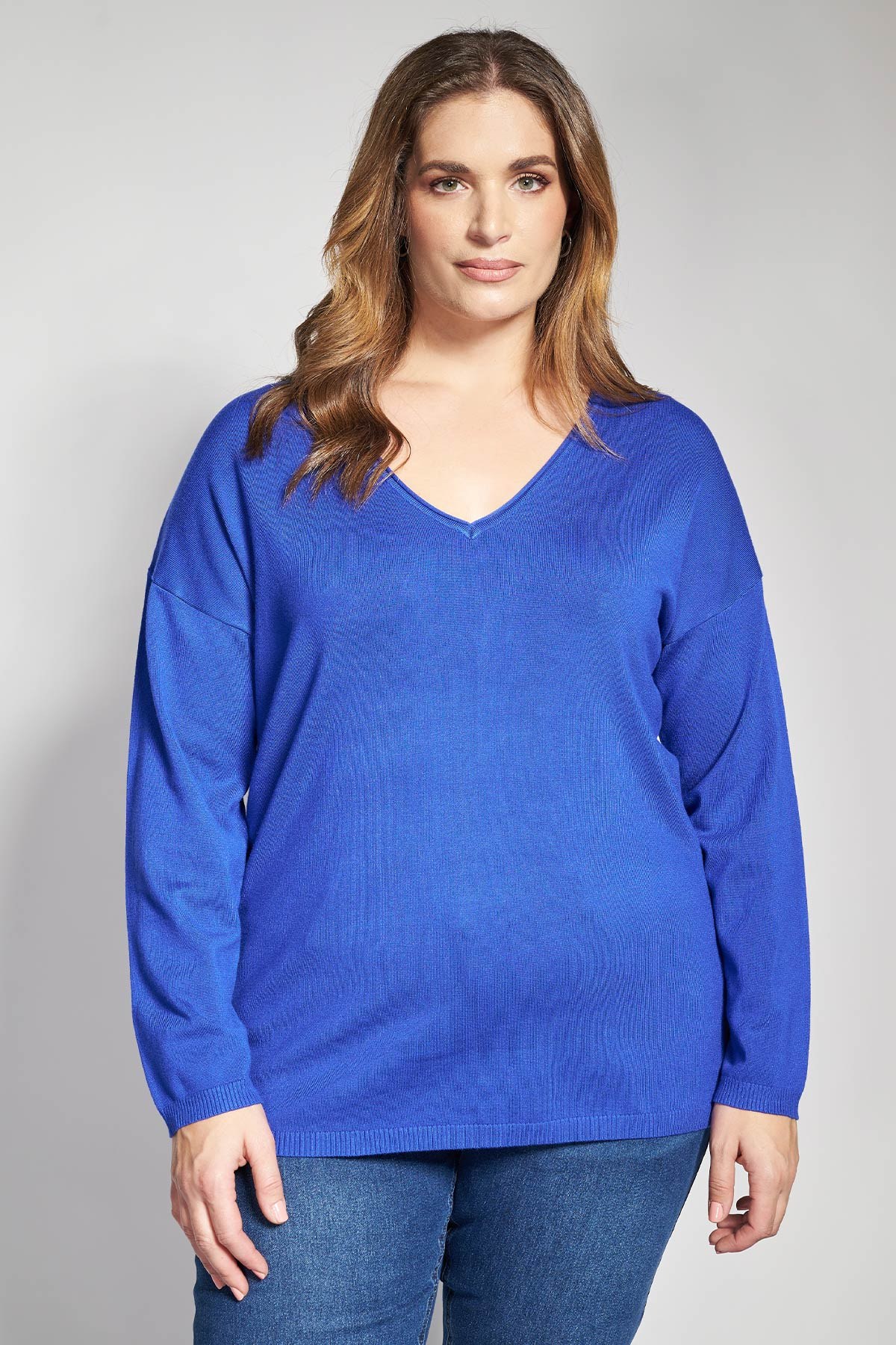 Πλεκτή μακρυμάνικη μπλούζα με V-λαιμόκοψη