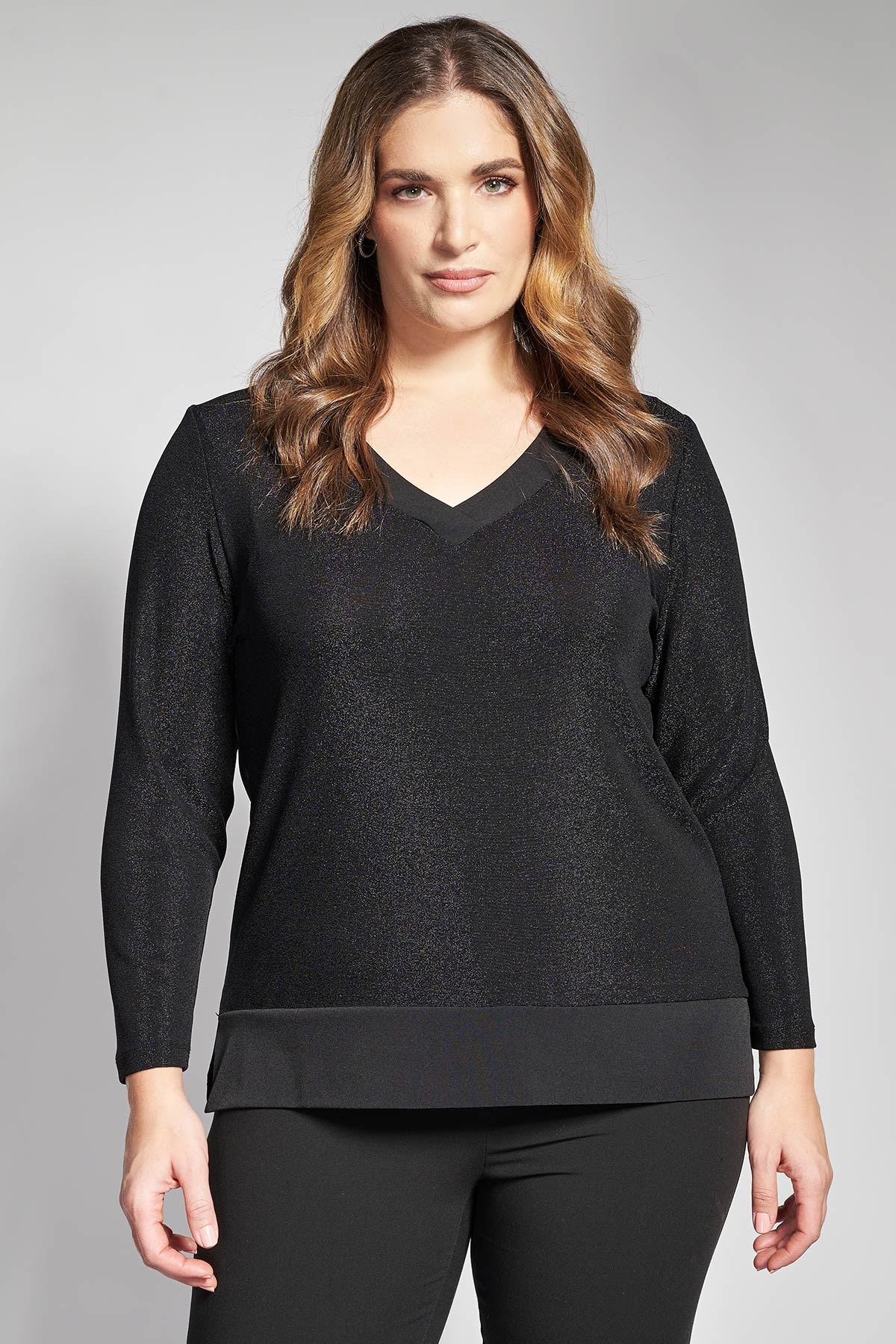Πλεκτή μπλούζα με V-λαιμόκοψη και lurex όψη