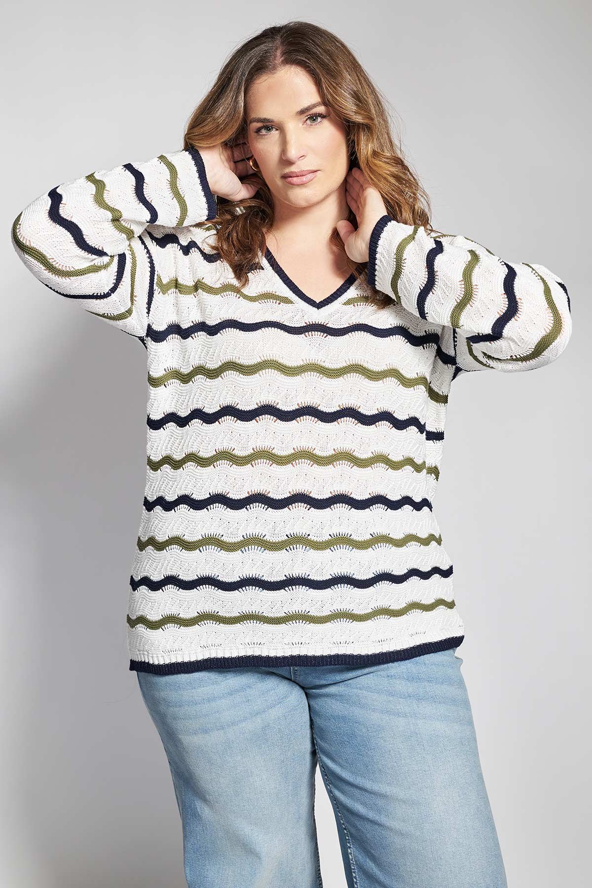 Πλεκτή μπλούζα ριγέ κυματιστό