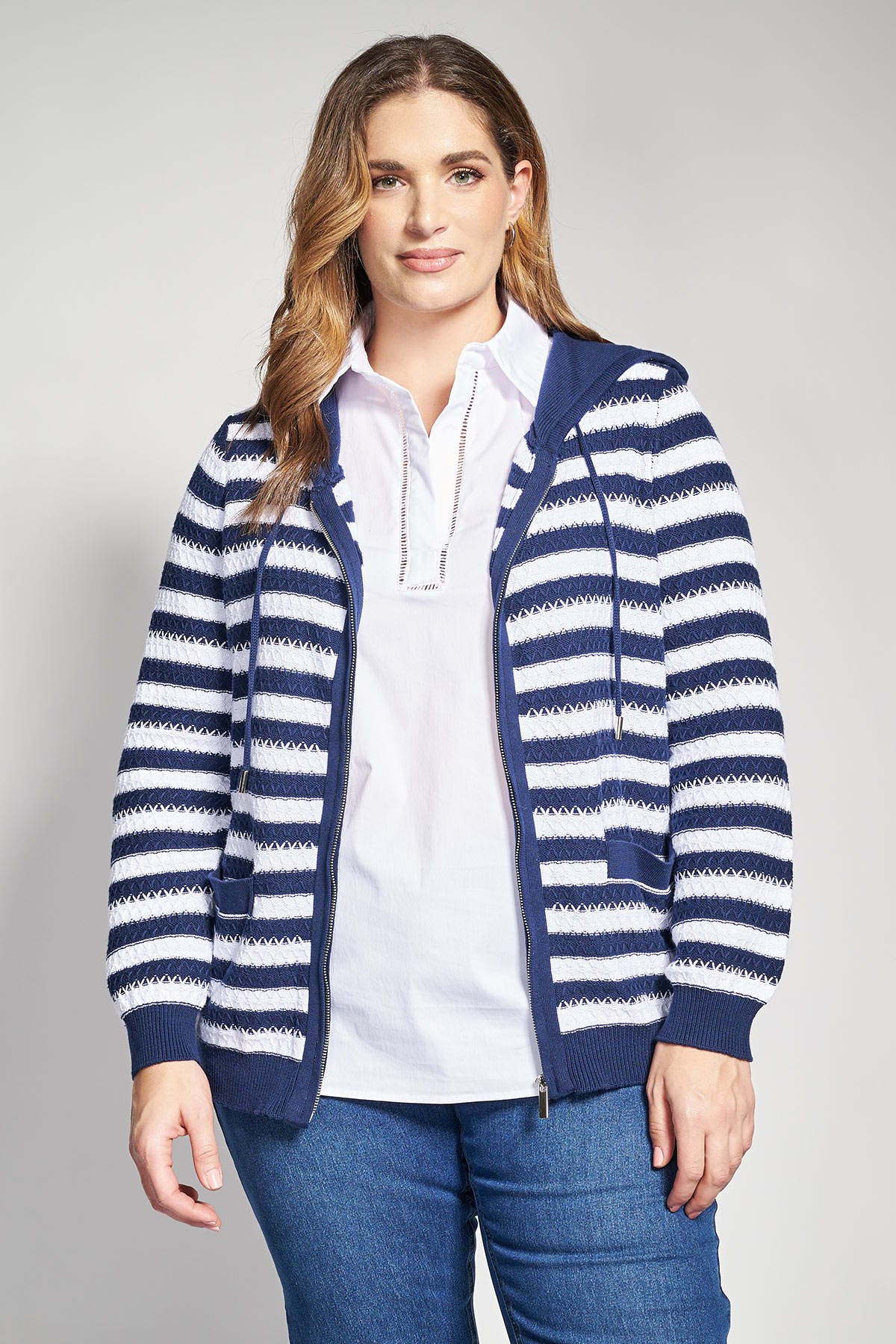 Πλεκτή ριγέ ζακέτα με κουκούλα