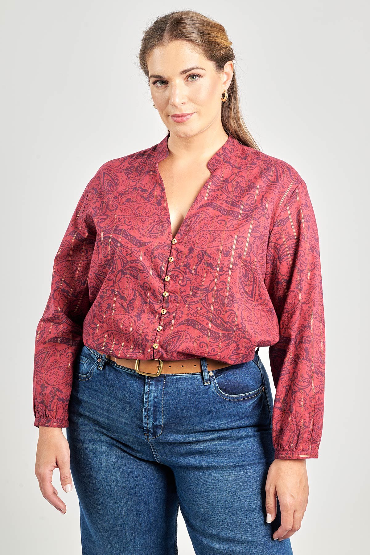 Πουκάμισο βαμβακερό boho εμπριμέ λαχούρια με lurex