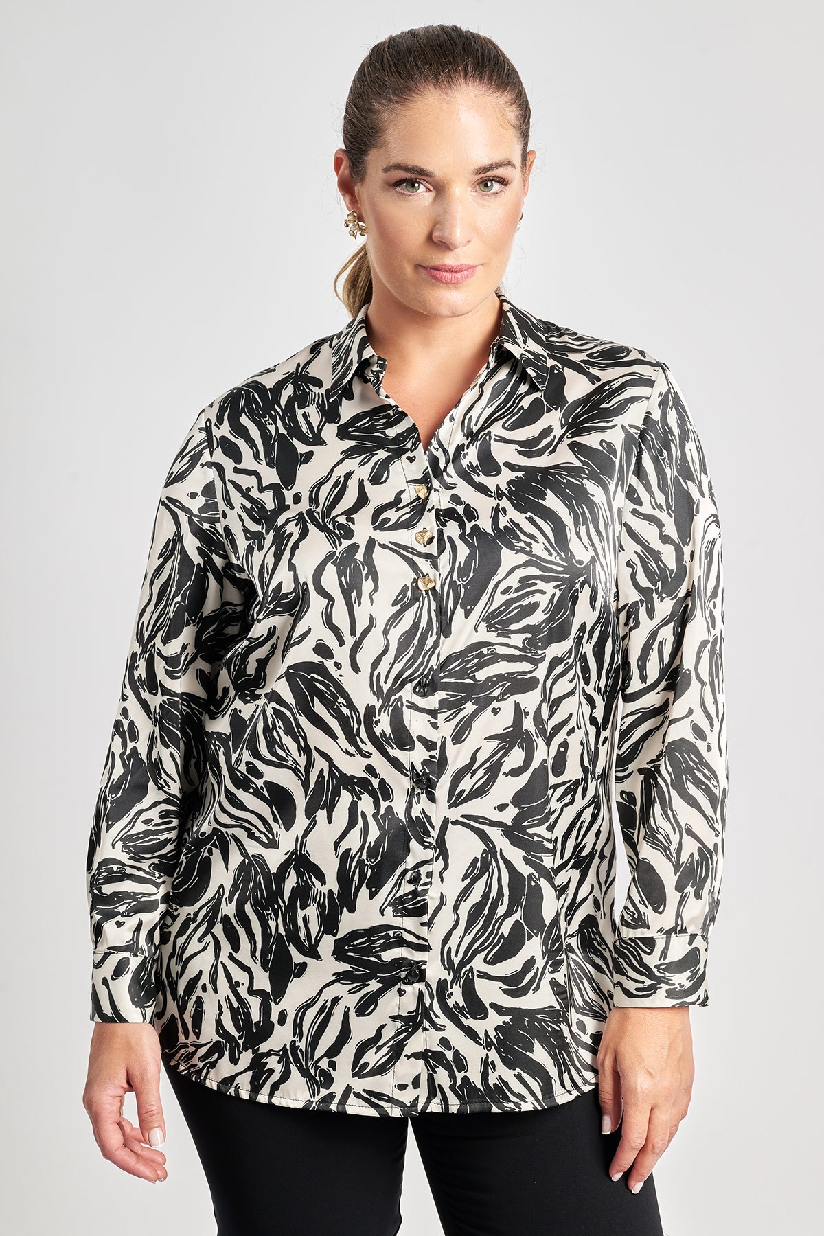 Πουκάμισο σατινέ εμπριμέ φλοράλ με χρυσές λεπτομέρειες