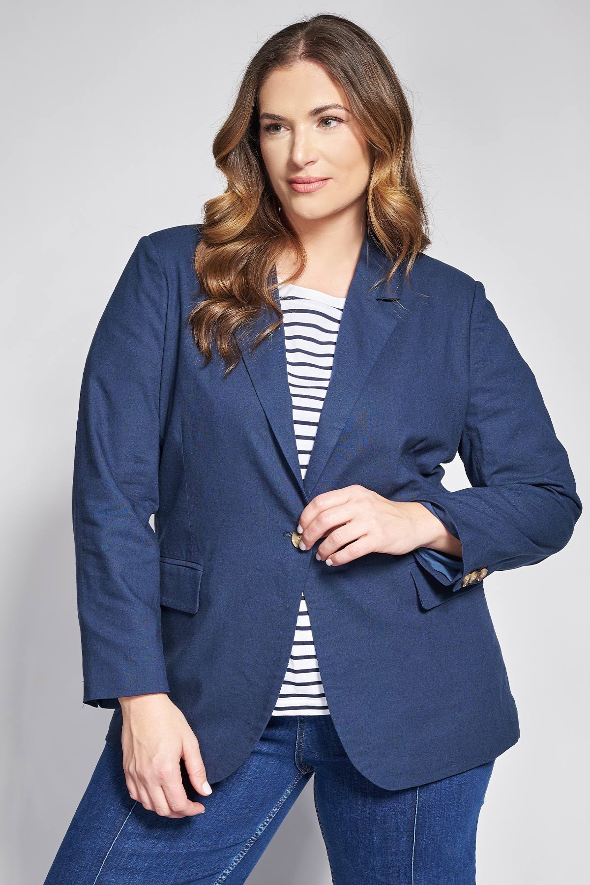 Προσθέστε έναν αέρα ανεπιτήδευτης κομψότητας στις εμφανίσεις σας με ένα διαχρονικό σακάκι που συνδυάζει την ποιότητα με τη σύγχρονη αισθητική. Η σύμμεικτη λινή ύφανσή του με βισκόζη, προσφέρει τη χαρακτηριστική δροσερή αίσθηση του φυσικού υλικού με μειωμένο τσαλάκωμα, διατηρώντας μια σταθερή και κομψή γραμμή όλη μέρα. Διαθέτει κλασικό πέτο, μονό κούμπωμα στο μπροστινό μέρος, μακριά μανίκια με διακοσμητικά κουμπιά, λειτουργικές τσέπες με καπάκι και άνετη εφαρμογή που φτάνει κάτω από τους γοφούς. Πλήρως φοδραρισμένο με φόδρα στον ίδιο χρωματικό τόνο. Για ένα καθημερινό look φορέστε το πάνω από ένα t-shirt και το αγαπημένο σας τζιν, ενώ για μια πιο formal περίσταση συνδυάστε το με μια αέρινη παντελόνα, ένα lingerie top και ένα ζευγάρι κομψές γόβες. Κατακτήστε το navy look συνδυάζοντάς το με ριγέ τοπ, chino παντελόνι και boat shoes. Το μοντέλο έχει ύψος 180 εκ στήθος 107 μέση 95 περιφέρεια 122 και φοράει το μέγεθος S