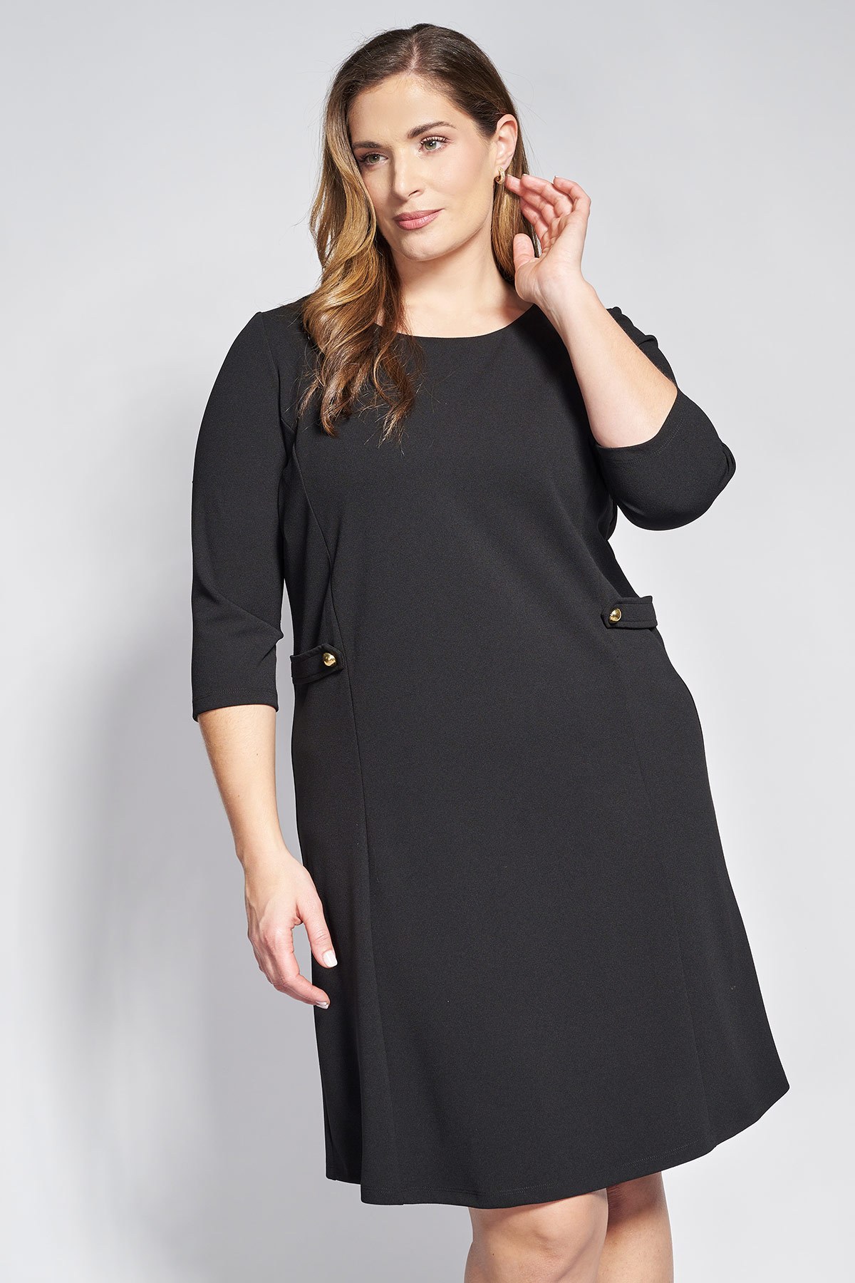 Φρεσκάρετε την γκαρνταρόμπα σας με ένα μίντι φόρεμα που συνδυάζει την απόλυτη άνεση με την απαραίτητη κομψότητα για κάθε ώρα της ημέρας. Η ελαστική scuba κρεπ ύφανσή του προσφέρει σταθερότητα και άψογη εφαρμογή, αναδεικνύοντας τη σιλουέτα με τον πιο κολακευτικό τρόπο. Διαθέτει θηλυκή στρογγυλή λαιμόκοψη, μανίκια τριών τετάρτων και διακοσμητικά ζωνάκια στη μέση με χρυσές λεπτομέρειες που προσθέτουν μια luxury πινελιά. Για ένα κομψό look γραφείου συνδυάστε το με minimal γόβες και μια δερμάτινη τσάντα, ενώ για μια βραδινή έξοδο επιλέξτε εντυπωσιακά κοσμήματα και ένα ζευγάρι ψηλοτάκουνες γόβες. Το μοντέλο έχει ύψος 180 εκ στήθος 107 μέση 95 περιφέρεια 122 και φοράει το μέγεθος S