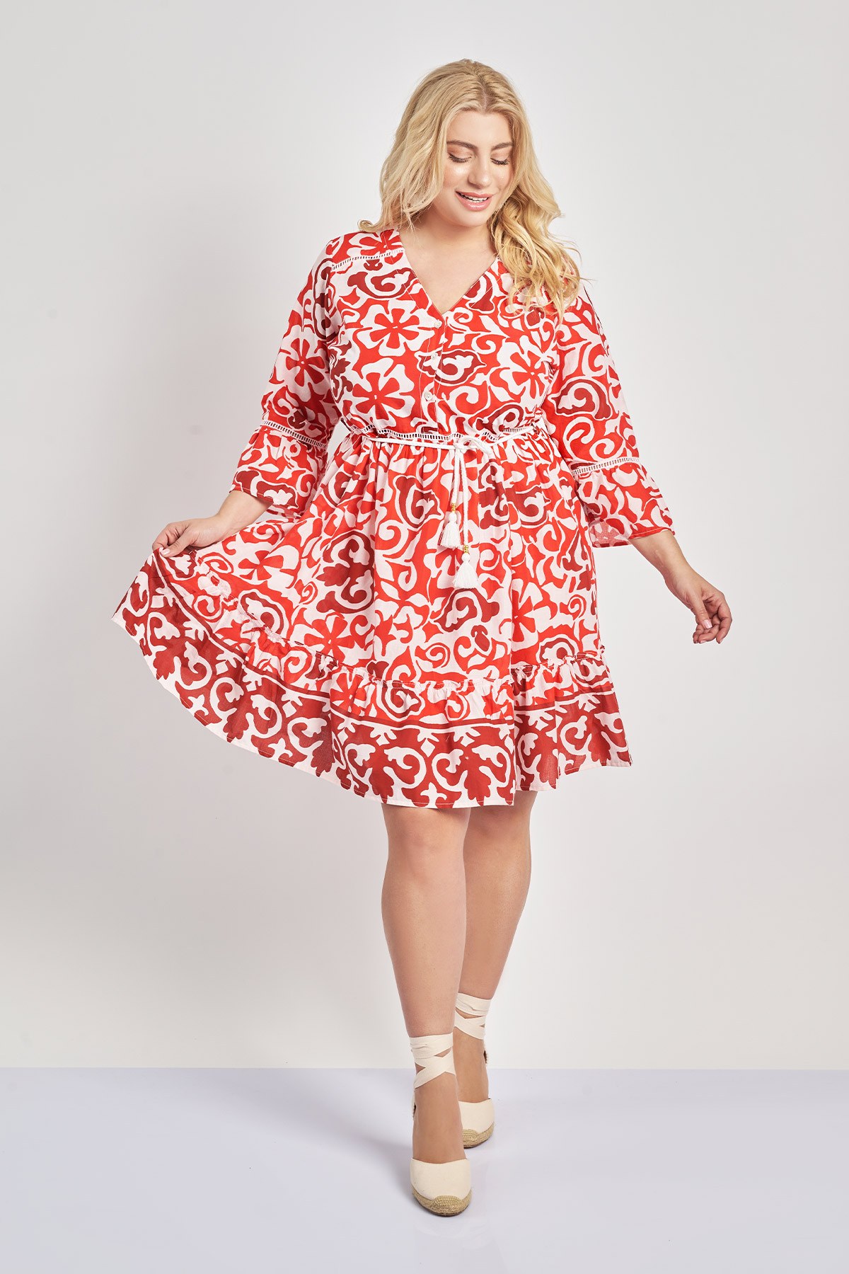Φόρεμα βαμβακερό εμπριμέ boho με ζωνάκι