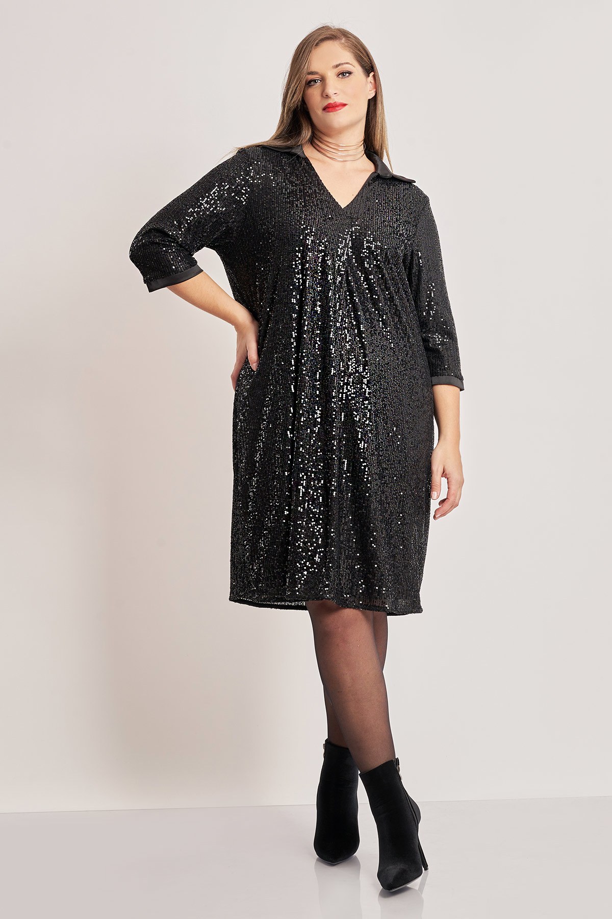 Φόρεμα παγιέτα με κουφόπιετα και γιακά