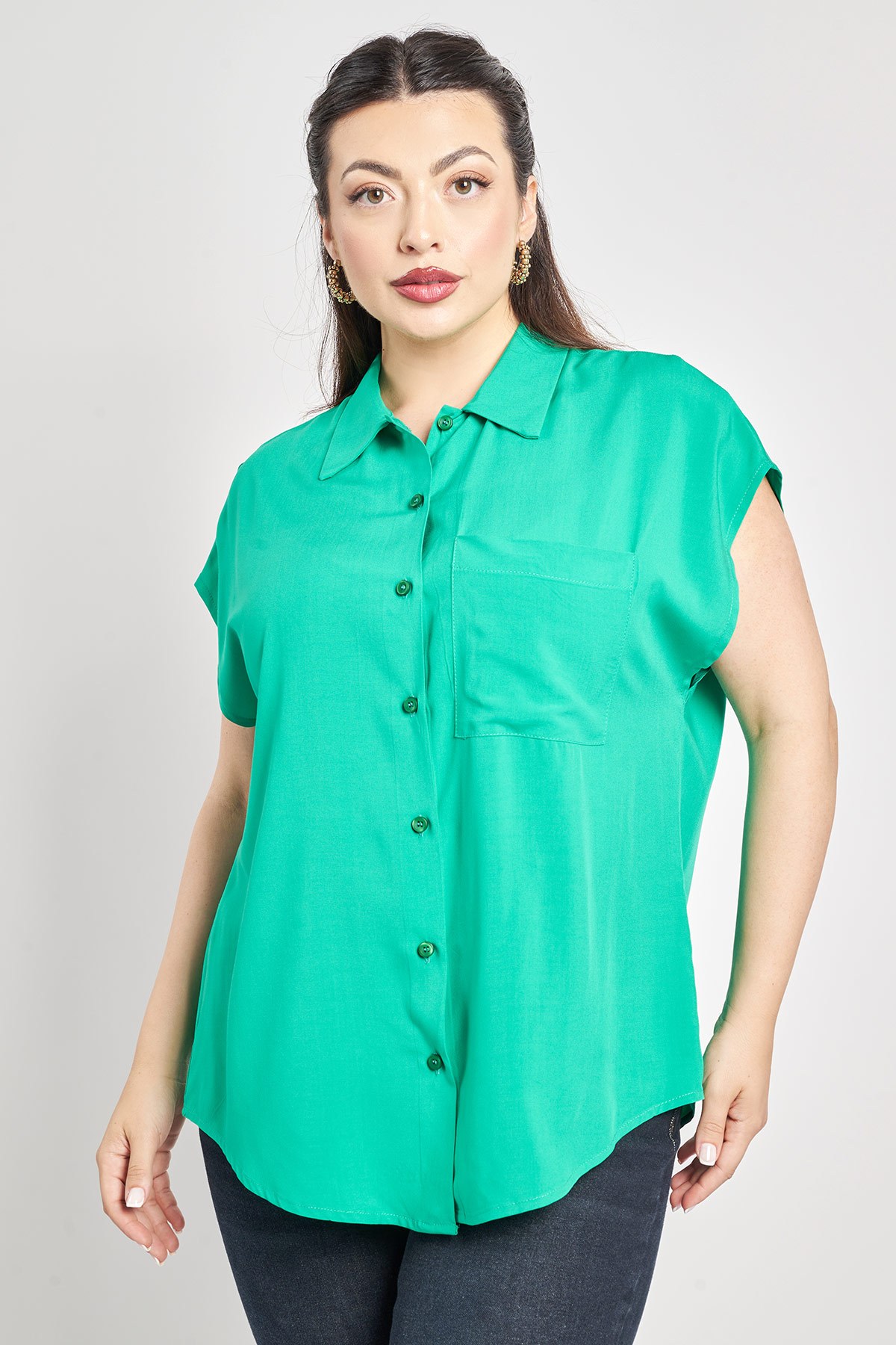 Αμάνικο πουκάμισο από ρεγιόν με όψη λινού. Γιακάς πουκαμίσου και μπροστινό κούμπωμα με πατιλέτα με κουμπιά στην ίδια απόχρωση. Τσεπάκι στο στήθος. Στρογγυλεμένο τελείωμα. Πιέτα στην πλάτη. Μήκος που καλύπτει τους γοφούς. Ένα κομμάτι που μπορεί να φορεθεί με ποικίλους τρόπους, τόσο στην πόλη όσο και στην παραλία ή τις εξορμήσεις. Το μοντέλο έχει ύψος 177εκ, στήθος 110, μέση 85, περιφέρεια 115 και φοράει μέγεθος S