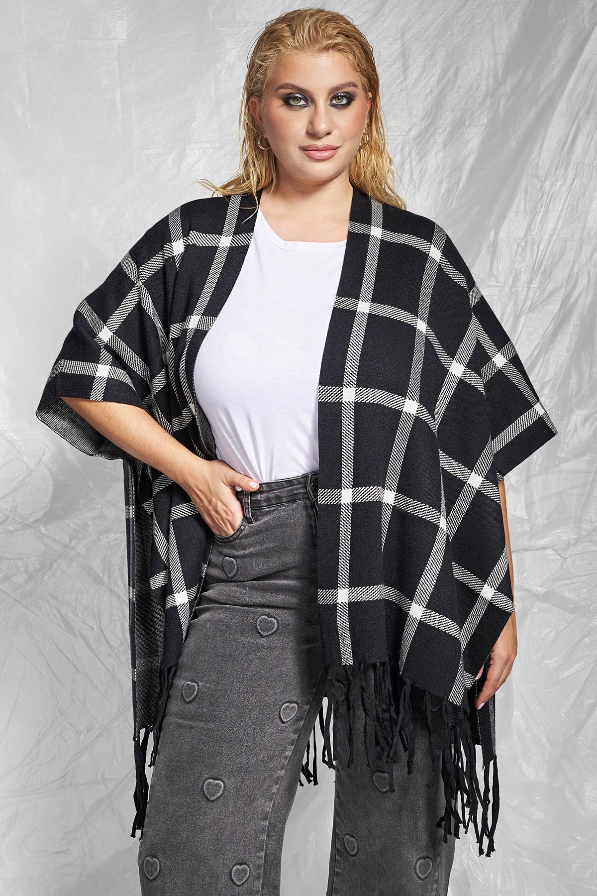 PRBT Πλεκτή Κάπα με Καρό Μοτίβο και Κρόσσια