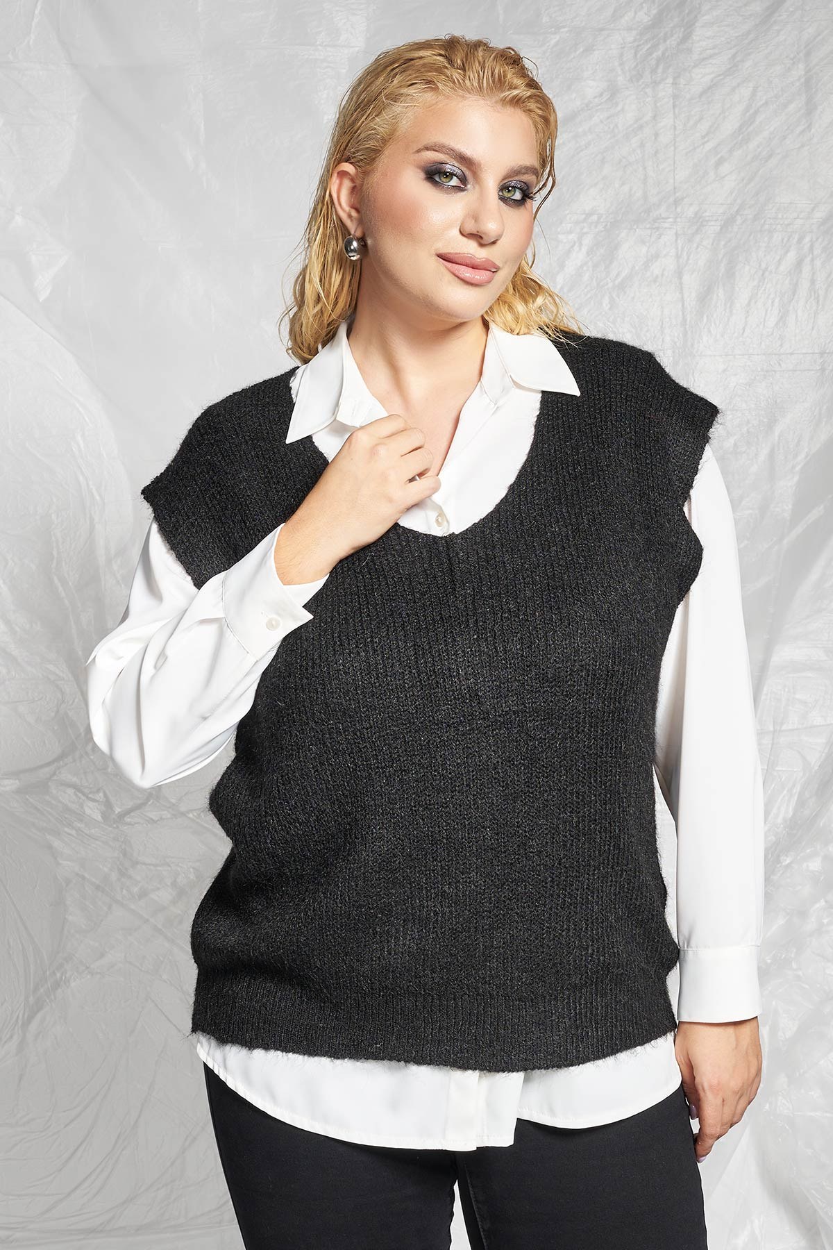 Ζεστή πλεκτή καζάκα με V-λαιμόκοψη και άνετη, χαλαρή γραμμή που φτάνει μέχρι τους γοφούς. Η πυκνή πλέξη προσφέρει ζεστασιά, ενώ η σχεδίαση χωρίς μανίκια την καθιστά ιδανική για layering πάνω από πουκάμισα ή μπλούζες. Αποτελεί ένα μοντέρνο και διαχρονικό κομμάτι που μπορεί να ανανεώσει κάθε σύνολο με preppy ή casual αισθητική. Για μια πρωινή εμφάνιση με office-ready χαρακτήρα, φορέστε την πάνω από ένα μακρυμάνικο πουκάμισο με γιακά και συνδυάστε με υφασμάτινο παντελόνι τύπου cigarette ή μια μίντι πλισέ φούστα. Ολοκληρώστε με loafers ή κομψές μπαλαρίνες. Για μια πιο τολμηρή βραδινή εμφάνιση, φορέστε την καζάκα μόνη της, ή με ένα διαφανές τοπ από μέσα, συνδυάζοντάς τη με ψηλόμεσο δερμάτινο παντελόνι ή σορτς. Προσθέστε ψηλοτάκουνα μποτάκια ή γόβες και μια τσάντα ώμου με αλυσίδα. Το μοντέλο έχει ύψος 177εκ στήθος 110 μέση 85 περιφέρεια 115 και φοράει μέγεθος S
