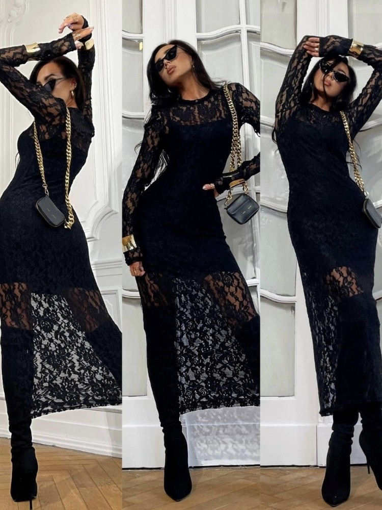 μαύρο φόρεμα με δαντέλα one size κανονική γραμμή