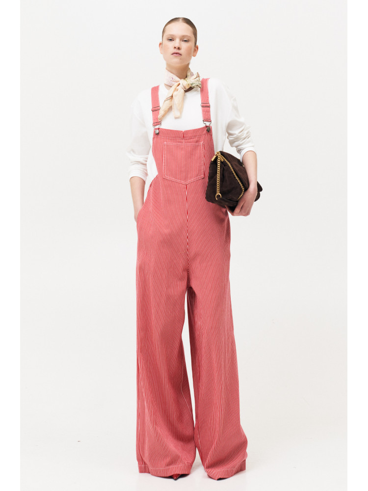 Τζην σαλοπέτα ριγέ με ρυθμιζόμενες τιράντες , σε φαρδιά γραμμή