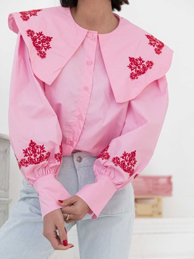 ροζ πουκάμισο με κόκκινες λεπτομέρειες κανονική γραμμή