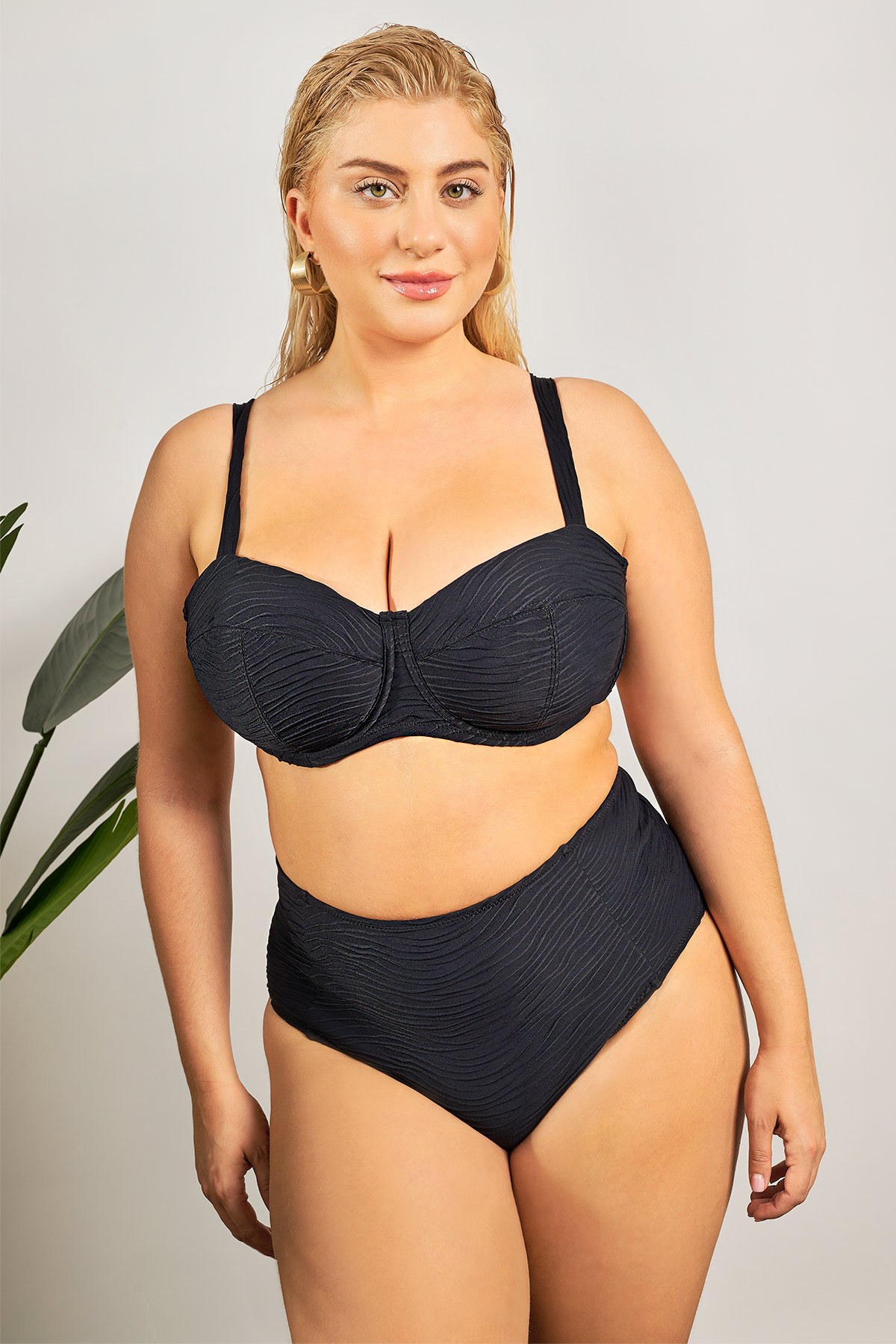 Ψηλόμεσο σλιπ με ανάγλυφη κυματιστή υφή που κολακεύει τη σιλουέτα. Ειδικός σχεδιασμός με ραφές στο μπροστινό μέρος, που βελτιώνει την σιλουέτα σμιλεύοντας την περιοχή της κοιλιάς. Διαθέτει εσωτερική επένδυση. Ολοκληρώστε το σετ με το μπικίνι τοπ 012510007103. Το μοντέλο έχει ύψος 177εκ, στήθος 110, μέση 85, περιφέρεια 115 και φοράει μέγεθος S